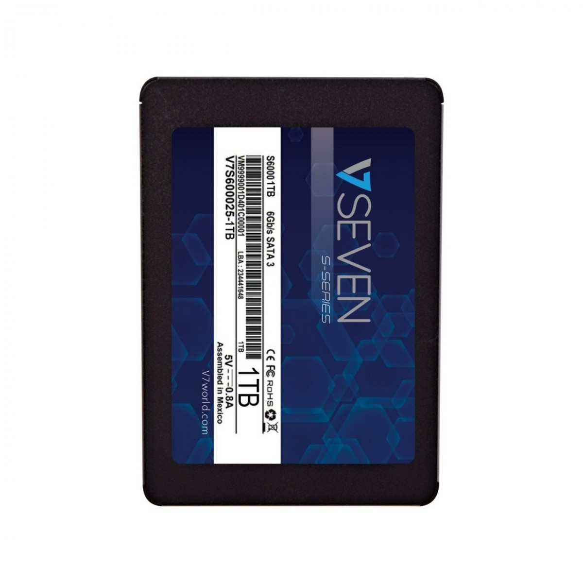 V7 SSD interno 3D NAND S6000 da 1 TB - SATA III 6 Gb/s, 2,5"/7 mm. Capacità SSD: 1024 GB, Fattore di forma dell'unità SSD: 2.5", Velocità di lettura: 520 MB/s, Velocità di scrittura: 560 MB/s, Velocità di trasferimento dati: 6 Gbit/s, Componente per: PC/PC portatile