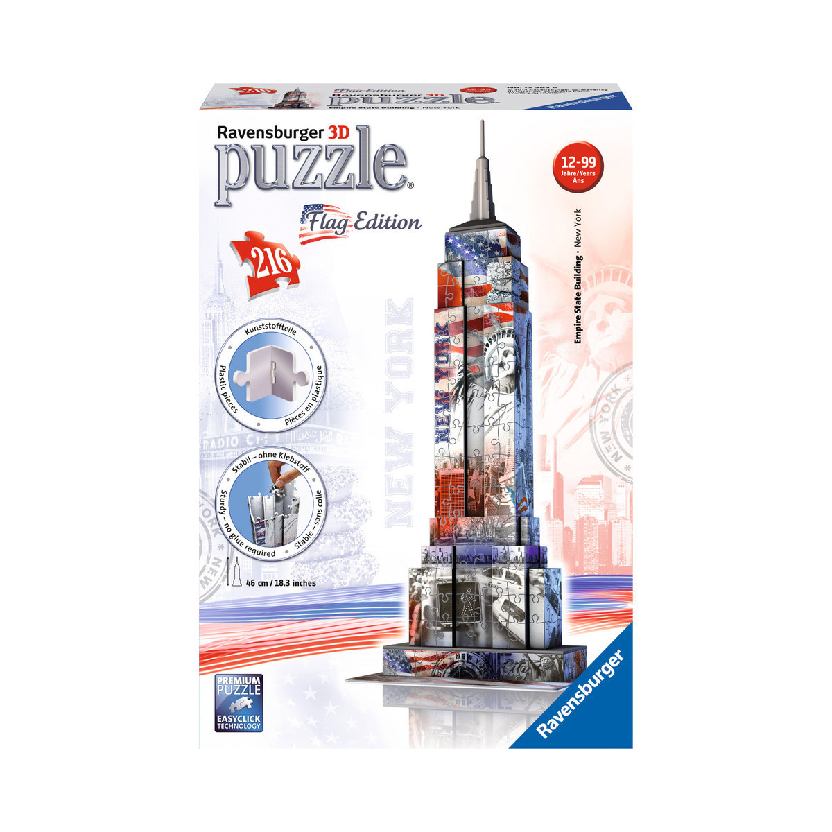 Ravensburger Empire State Building Flag Edition. Numero di pezzi del puzzle: 216 pezzo(i), Età consigliata (min): 12 anno/i. Larghezza: 140 mm, Profondità: 65 mm