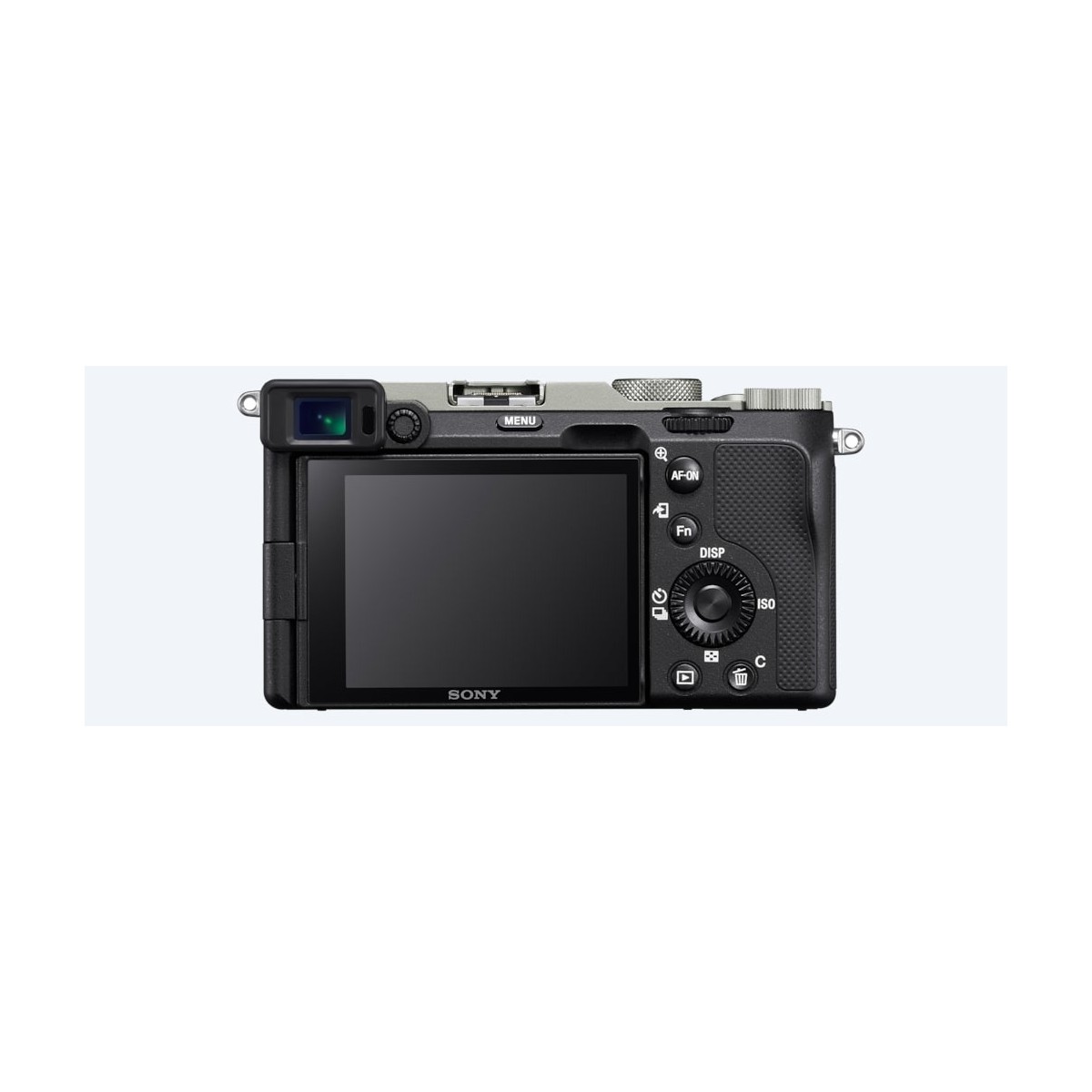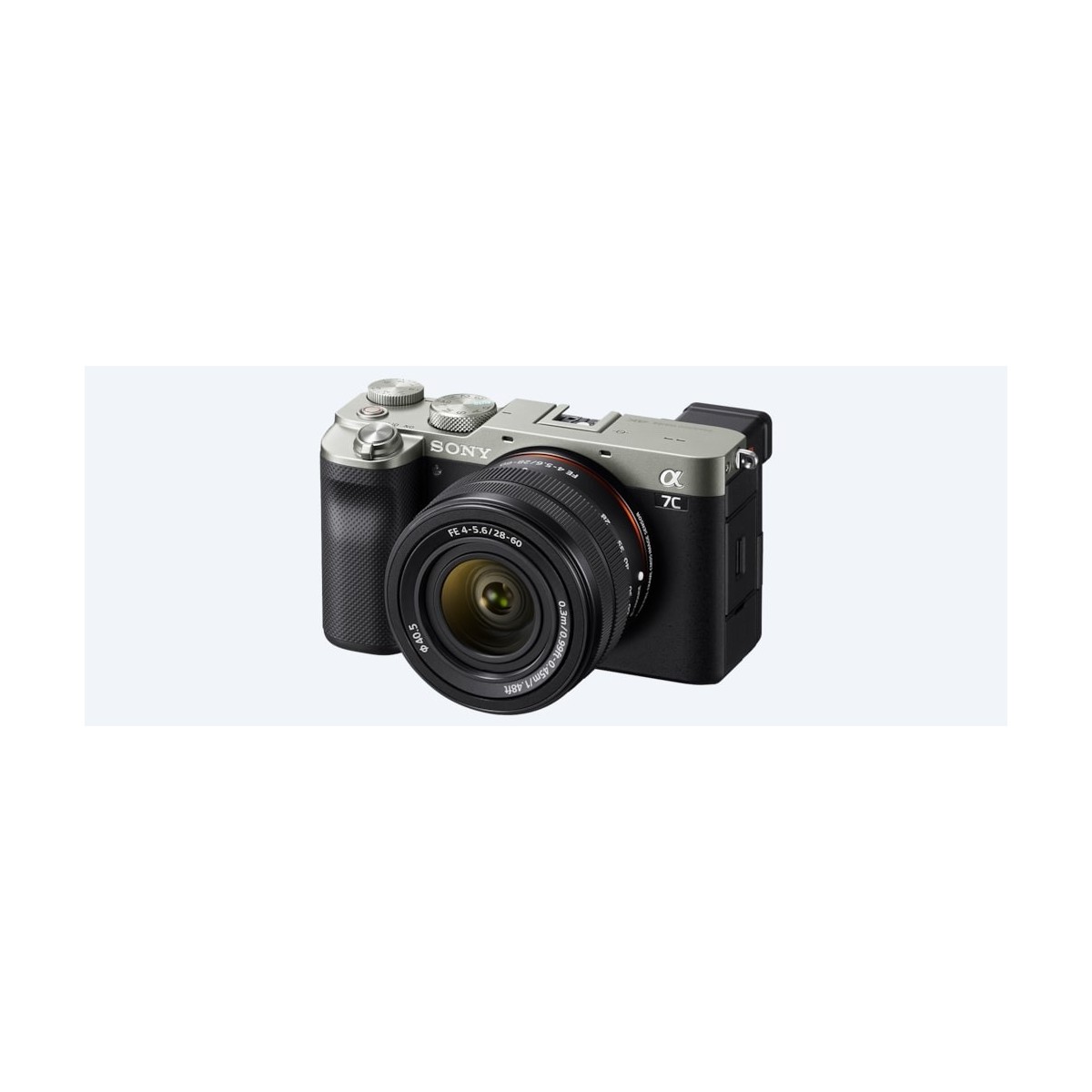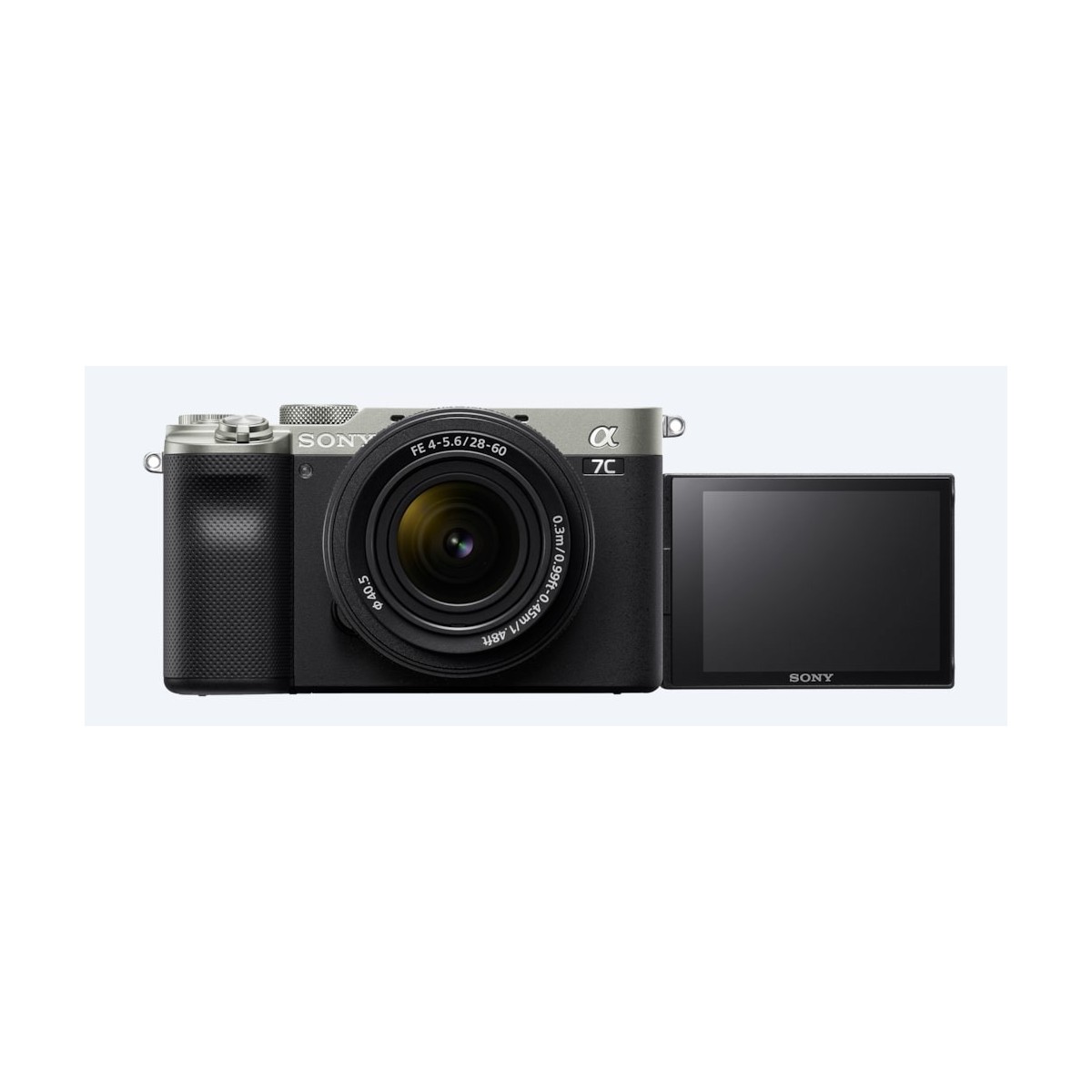 Sony α 7C. Tipologia fotocamera: MILC, Megapixel: 24,2 MP, Tipo sensore: CMOS, Risoluzione massima immagine: 6000 x 4000 Pixel. Sensibilità ISO (max): 204800. Lunghezza focale: 28 - 60 mm. Velocità massima dell'otturatore della fotocamera: 1/4000 s. Wi-Fi. Tipologia HD: 4K Ultra HD, Risoluzione massima video: 3840 x 2160 Pixel. Dimensioni schermo: 7,49 cm (2.95"), Touch screen. Tipo di mirino: Elettronico. Peso: 424 g. Colore del prodotto: Nero, Argento