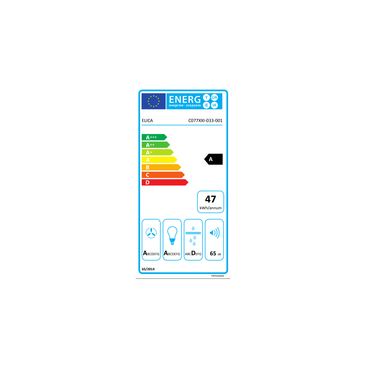 Elica PRF0166928. Potenza massima di estrazione: 650 m³/h, Tipo di estrazione: Aspirante, Emissione acustica: 65 dB. Tipo: Cappa aspirante a parete, Colore del prodotto: Nero, Materiale della scocca: Vetro. Tipo di filtro antigrasso: Alluminio. Classe efficienza energetica: A, Potenza motore: 233 W