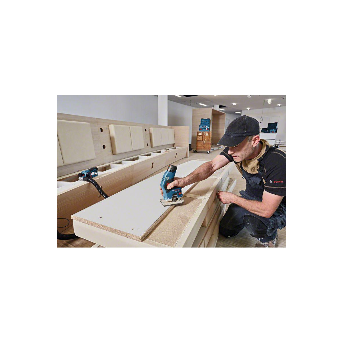 Il rifilatore a batteria GKF 12V-8 Professional è il primo utensile al mondo nella categoria professionale da 12 V e si distingue per il design unico che consente un perfetto controllo. Il design innovativo, il peso ridotto ed il baricentro ideale sono ottimizzati per offrire il massimo in termini di maneggevolezza ed ergonomia. La forma compatta del rifilatore è resa possibile dal motore brushless e dal sistema da 12 V. Alimentazione a batteria per la massima manovrabilità, comodità e libertà durante le operazioni di fresatura.