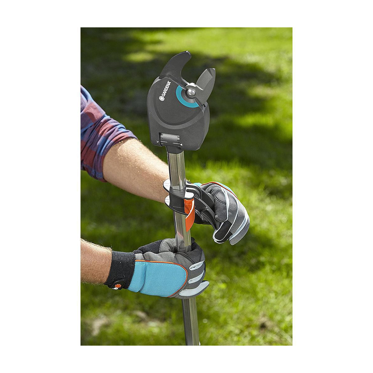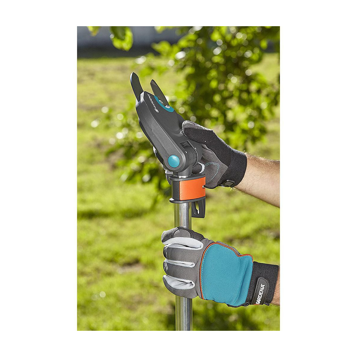 Il Troncarami GARDENA StarCut 160 plus è lo specialista per la manutenzione degli alberi. Con una lunghezza di 160 cm, consente un taglio facile e sicuro dal suolo senza utilizzare la scala. La trasmissione ad ingranaggi 12x permette di tagliare efficacemente rami con diametro fino a 32 mm. Il nuovo gancio regolabile per la rimozione dei rami tagliati garantisce un ulteriore comfort. Ciò consente di rimuovere i rami segati dalle corone di alberi senza alcun problema. Il GARDENA StarCut 160 plus è dotato di un meccanismo di trasmissione a puleggia interna che impedisce il bloccaggio fra i rami durante il taglio. La testa di taglio extra-leggera e sottile consente un taglio comodo e mirato anche vicino al tronco. L'angolo di taglio può essere regolato individualmente dal suolo. Le lame con rivestimento antiaderente e affilatura di precisione riducono la resistenza durante il taglio e garantiscono una facile pulizia. Il manicotto di trascinamento con scorrimento e una maniglia aggiuntiva garantiscono una maneggevolezza piacevole e sicura e permettono di raggiungere una maggiore distanza: ca. 3,5 m inclusa l'altezza dell'utente. Lo StarCut 160 plus GARDENA è 'Made in Germany'. La garanzia di 25 anni garantisce la migliore qualità.