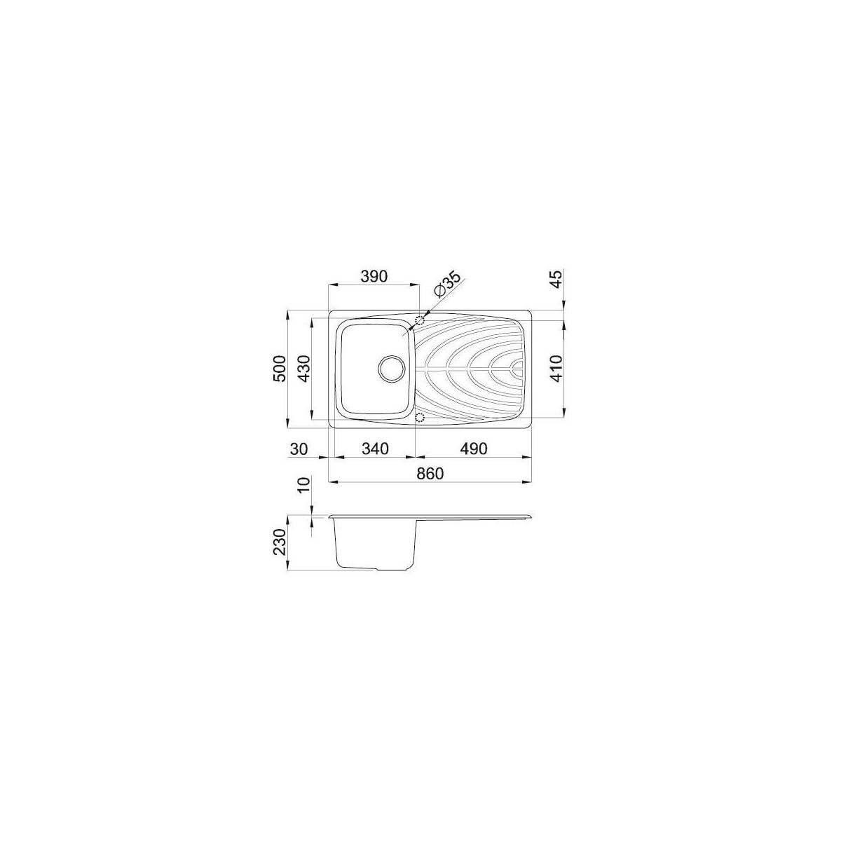 | Dimensioni prima vasca (LxL) | 340 x 430 mm |