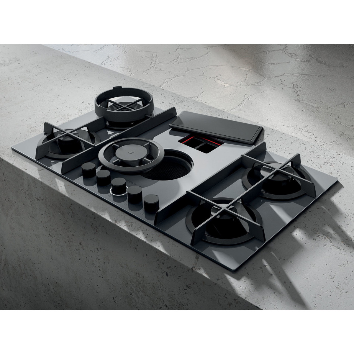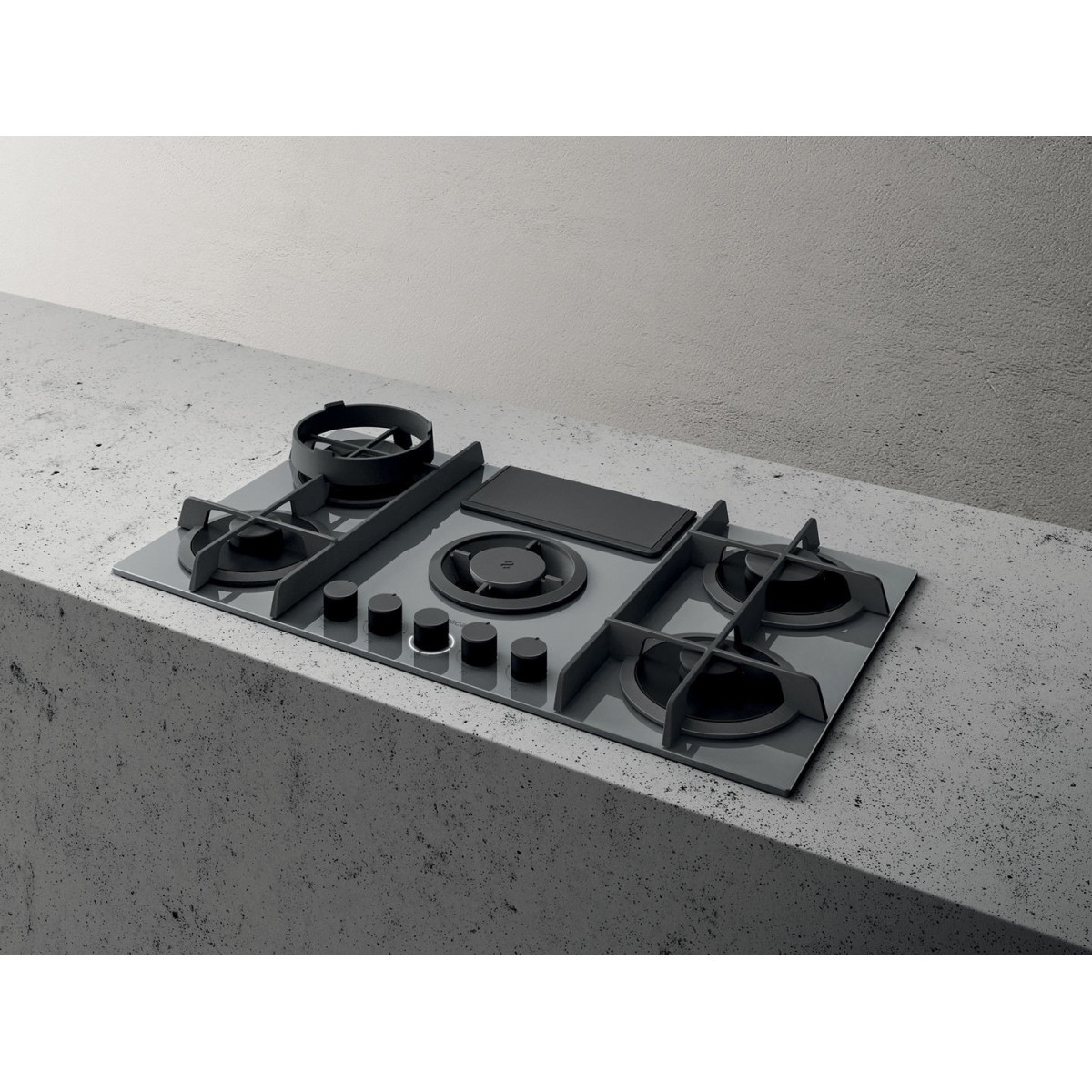 Elica NIKOLATESLA FLAME GR/F/83 - Piano Cottura a Gas con Cappa Integrata, 5 Fuochi, Vetro Grigio, 88 cm, PRF0147743, A