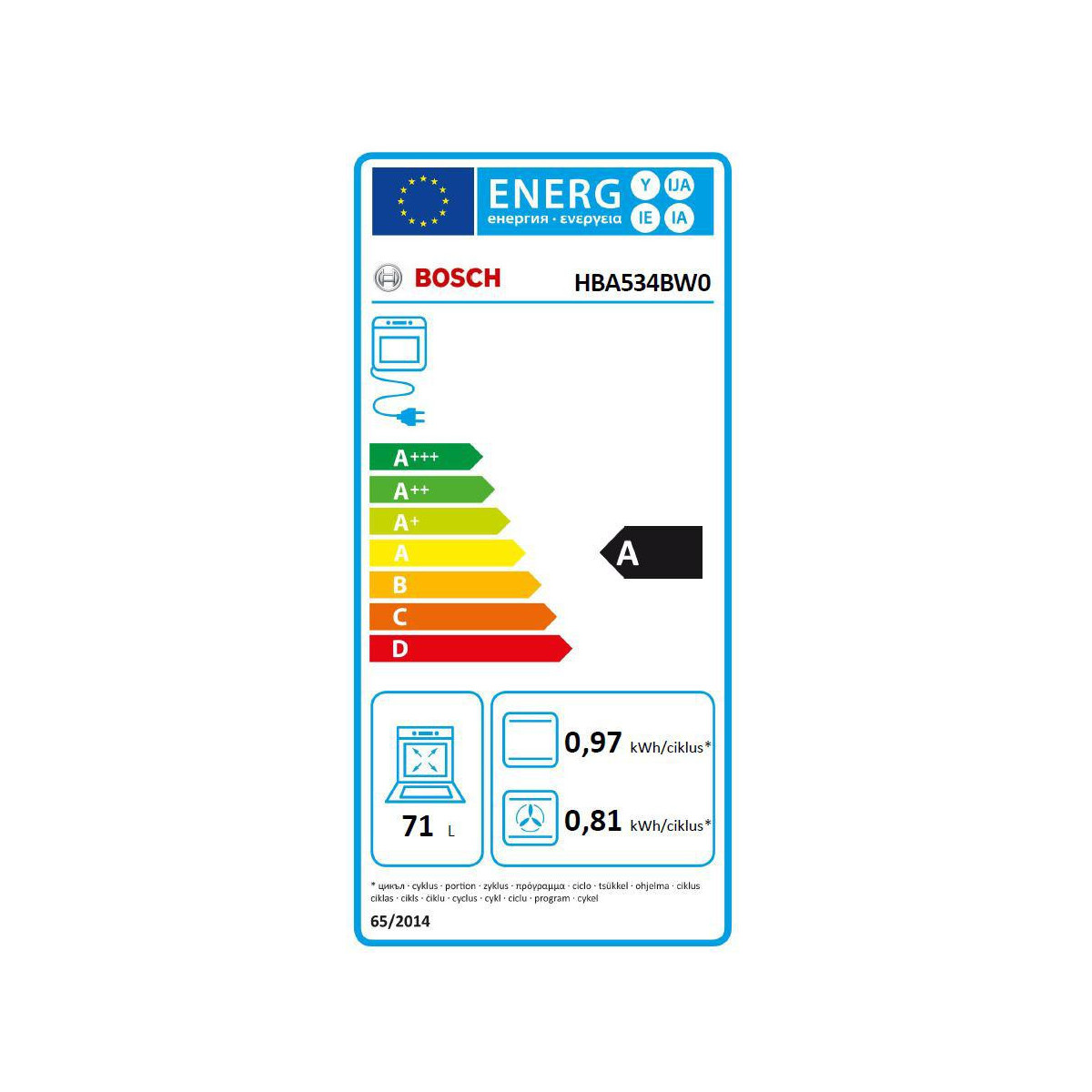 | Capacità netta del forno | 71 L |