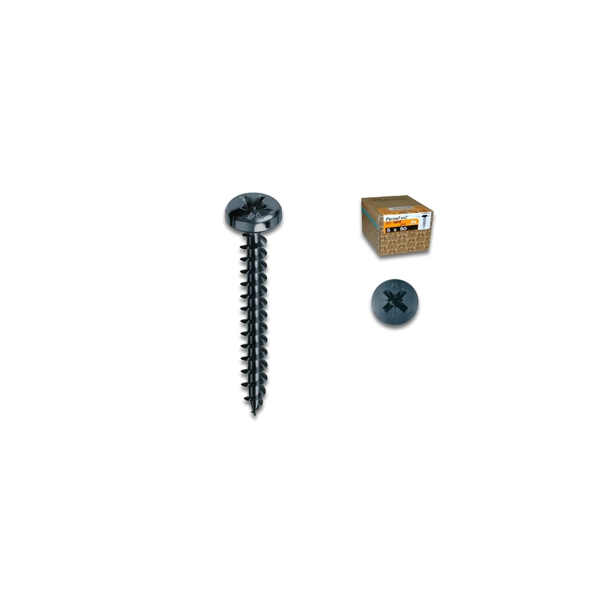 Viti per legno tutto filetto testa Cilindrica Impronta Croce 5,0X25 mm Zincata Nera Panel-VIT TC Scatola 500 pz