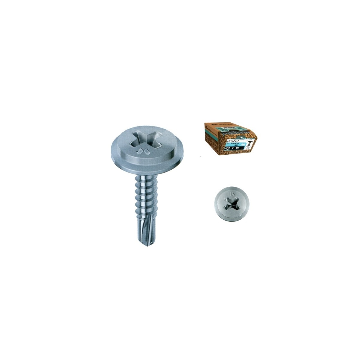 Viti autoperforanti / autofilettanti per metallo Testa fungo flangiata larga - Impronta Croce 4,2X13 mm Zincata Bianca Drillex