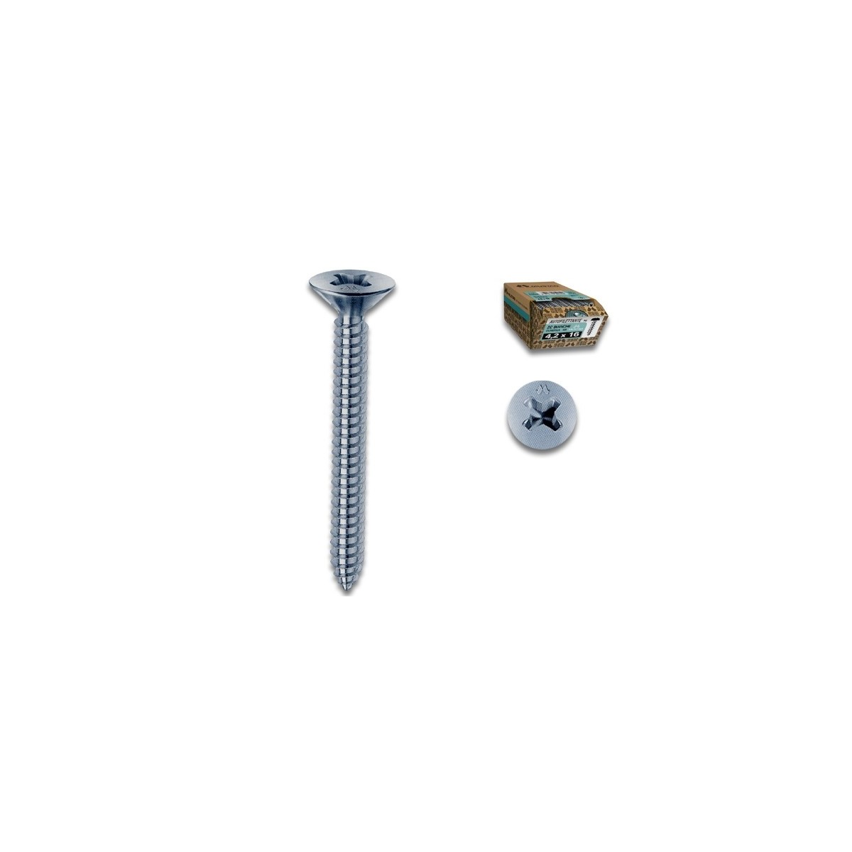 Viti autofilettanti per metallo testa Svasata Piana Impronta Croce 3,5X38 mm Zincata Bianca Mustad Autofilettante Scatola 500 pz