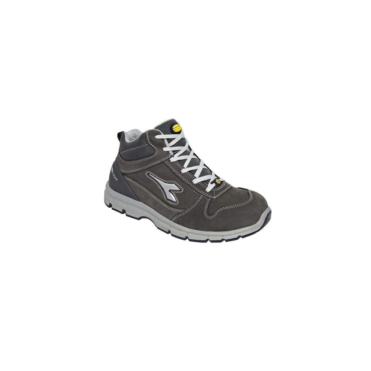 Scarpa alta S3 in nabuk pull-up idrorepellente, puntale in acciaio 200j, calzata 10 k-sole a passaggio zero, plantare estraibile in eva termoformata colore grigio castello.