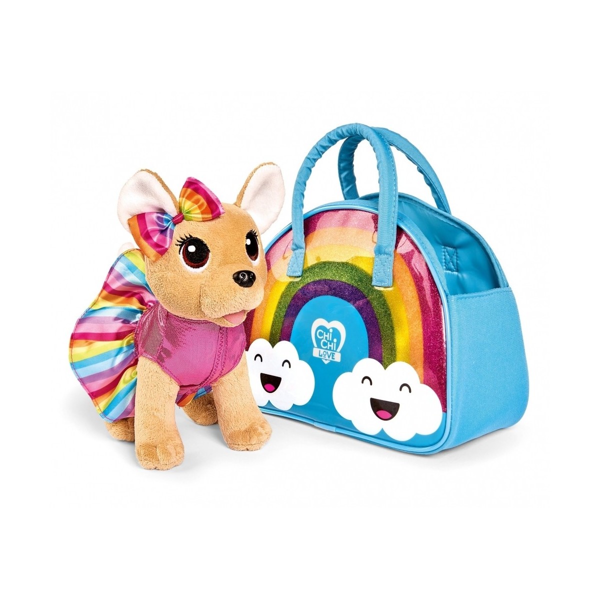 Chi Chi Love Rainbow è davvero trendy! Guarda quanto è bella la sua borsa arcobaleno scintillante! Inoltre il cagnolino indossa un fantastico abito abbinato alla borsa! Porta il tuo Chi Chi Love sempre con te per essere alla moda! Chi Chi LOVE Rainbow è alto 20 cm ed è adatto ai bambini dai 5 anni.