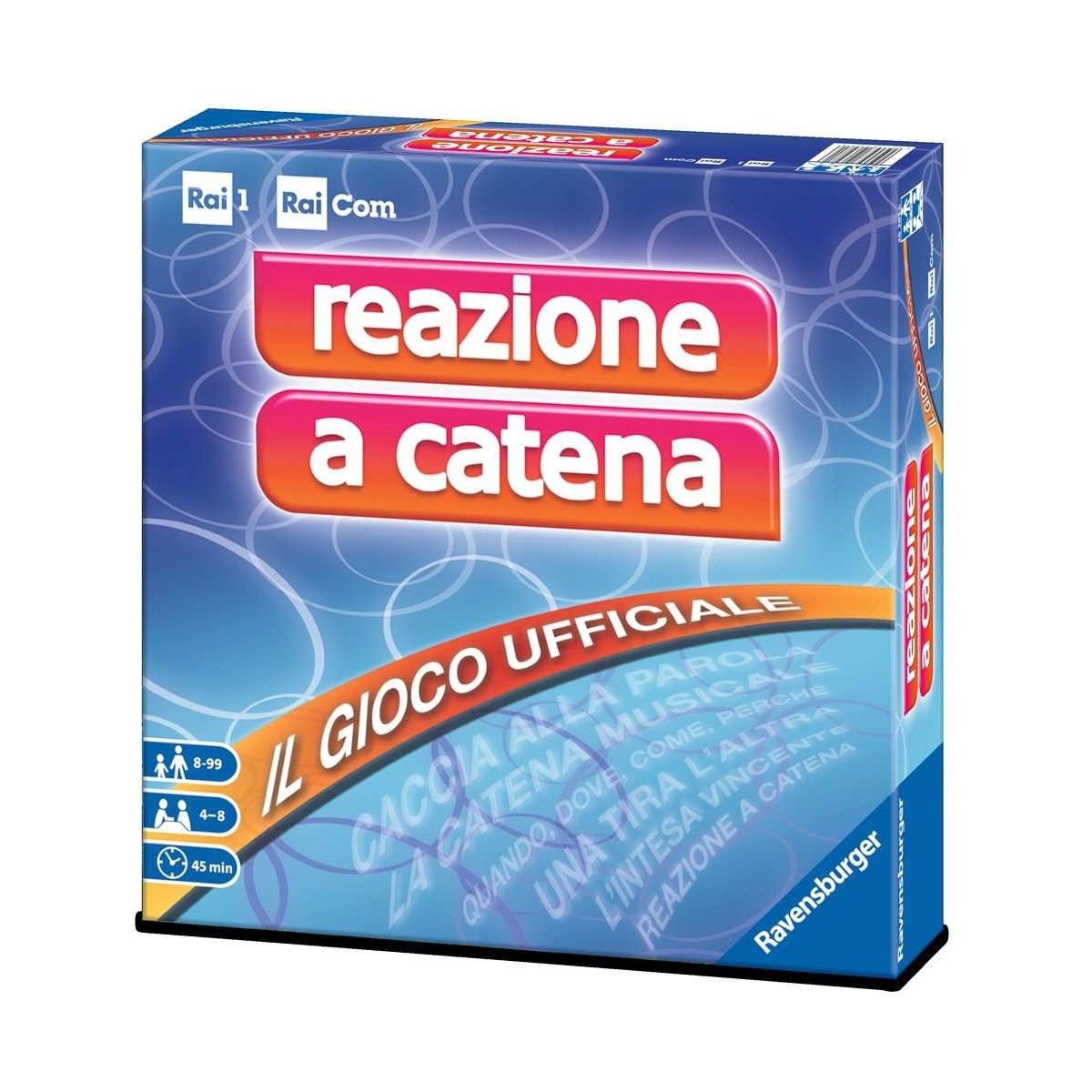Il gioco ufficiale della famosa trasmissione televisiva “Reazione a catena”, finalmente a casa vostra! Formate due squadre e sfidatevi in una serie di giochi proprio come in TV. Mettete alla prova le vostre conoscenze sulla lingua italiana in una divertente “ginnastica mentale” che coinvolgerà tutti. Chi riuscirà a risolvere la reazione a catena finale e si aggiudicherà il montepremi più alto?
