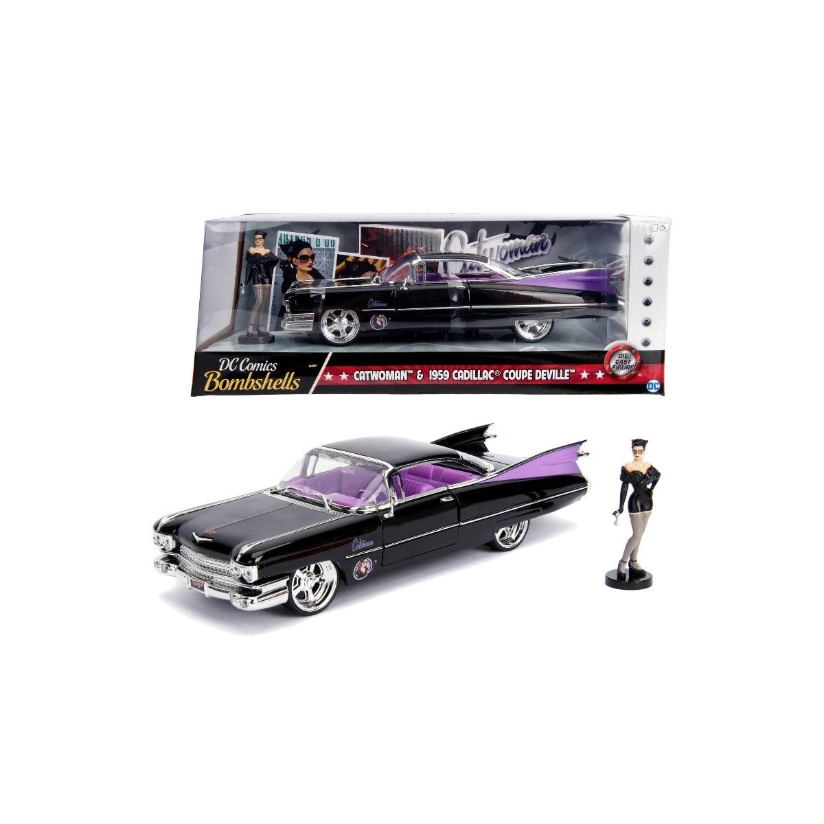 Catwoman 1959 Cadillac in scala 1:24 die-cast con personaggio di Catwoman in die cast