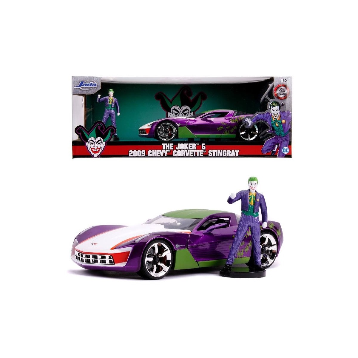 Joker 2009 Chevy Corvette Stingray in scala 1:24 die-cast con personaggio di Jocker in die cast