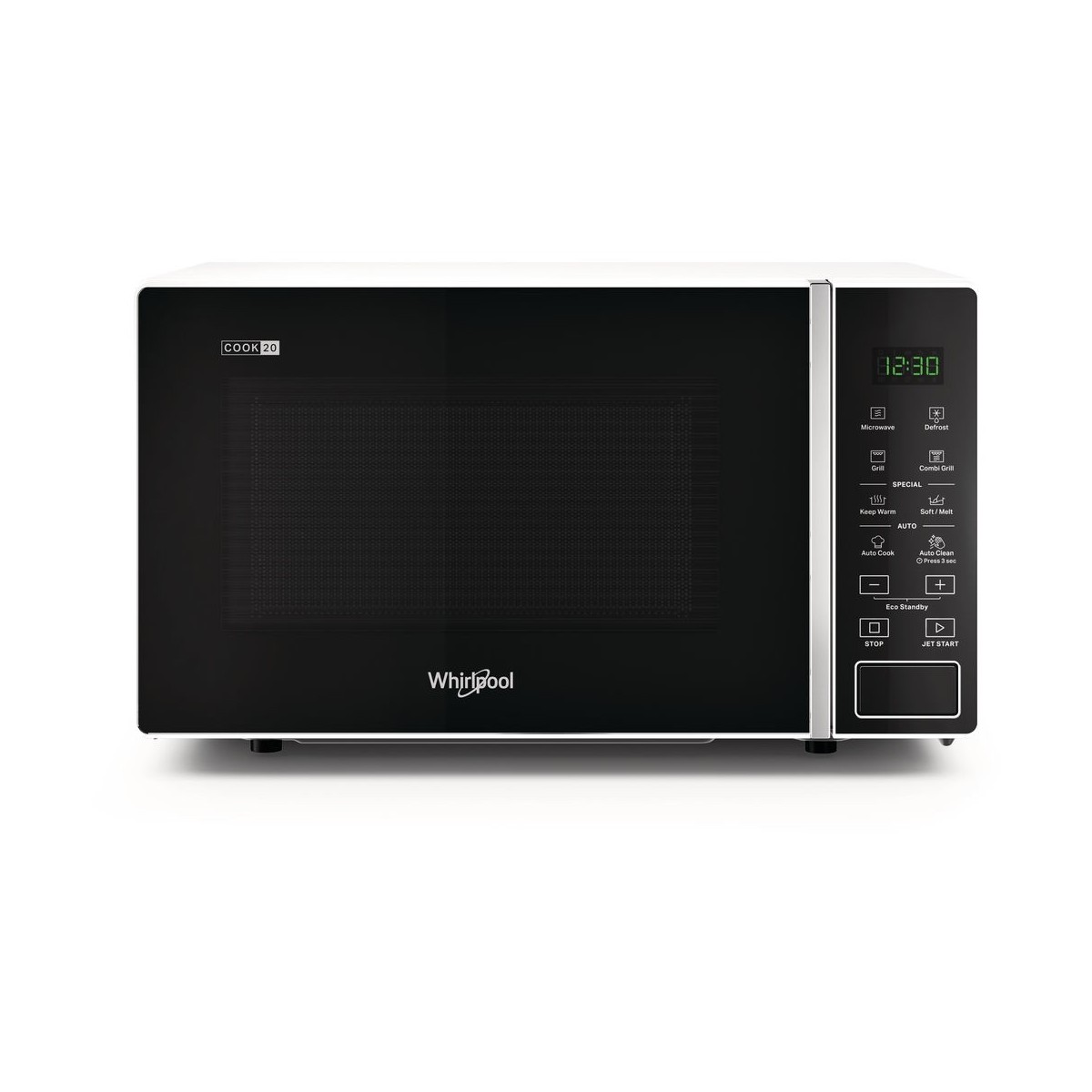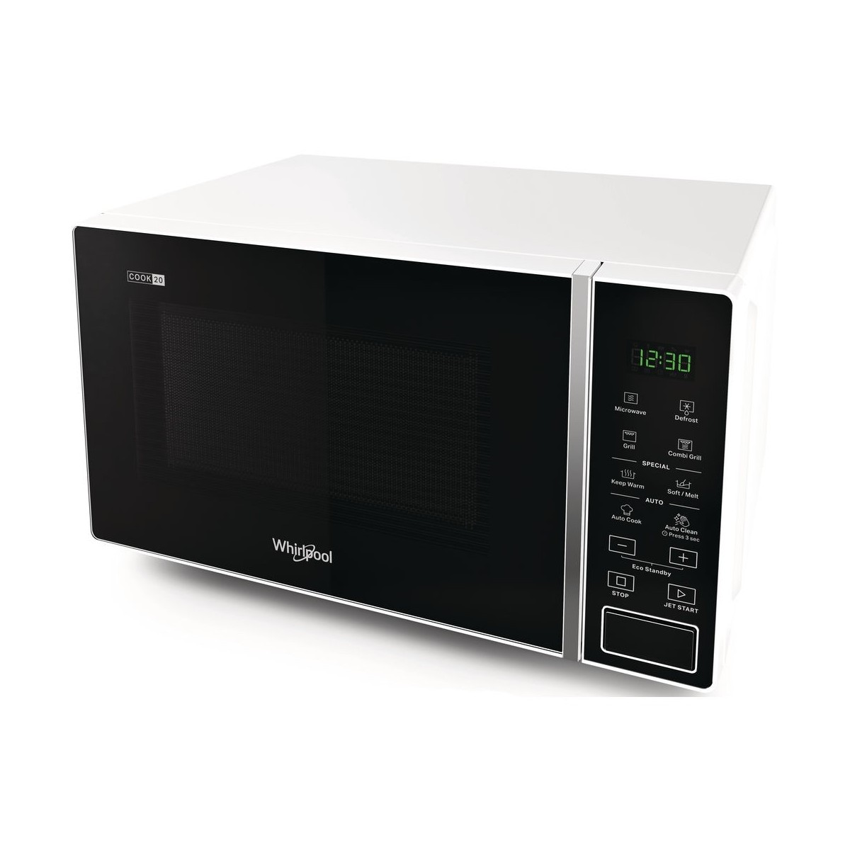 Whirlpool MWP 203 W. Posizionamento dell'apparecchio: Superficie piana, Tipo di prodotto: Microonde con grill, Capacità interna: 20 L. Tensione di ingresso AC: 230-240 V, Frequenza di ingresso AC: 50 Hz, Corrente: 6 A. Larghezza: 452 mm, Profondità: 363 mm, Altezza: 262 mm