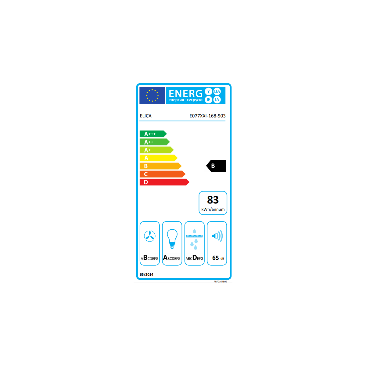Elica PRF0164805. Potenza massima di estrazione: 757 m³/h, Tipo di estrazione: Aspirante, Emissione acustica: 65 dB. Tipo: Cappa aspirante a parete, Colore del prodotto: Bianco, Materiale della scocca: Vetro. Tipo di filtro antigrasso: Alluminio. Classe efficienza energetica: B, Potenza motore: 265 W. Larghezza: 800 mm, Profondità: 326 mm