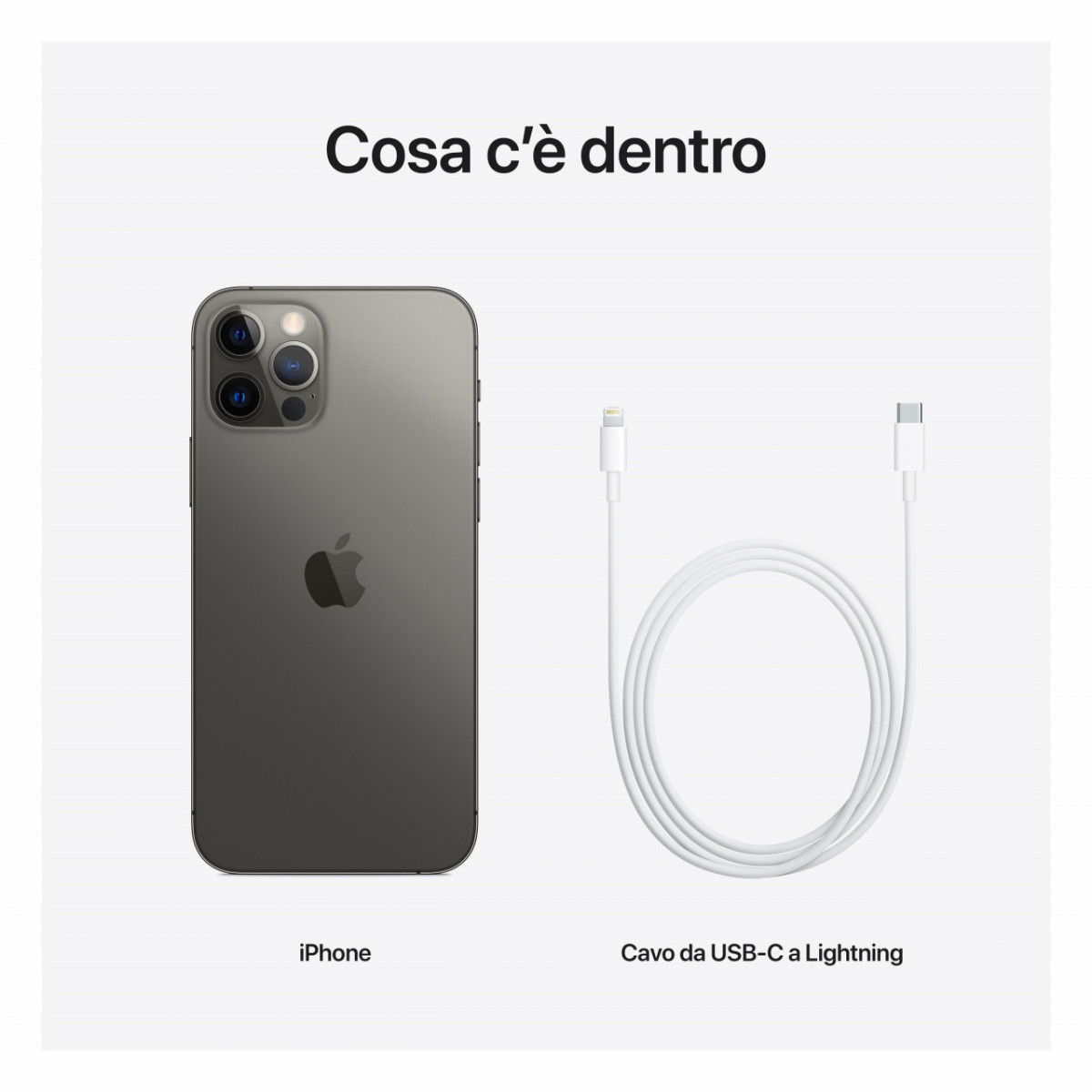 La confezione include iPhone e cavo da USB-C a Lightning. Puoi acquistare alimentatore e auricolari scegliendoli tra gli accessori proposti.