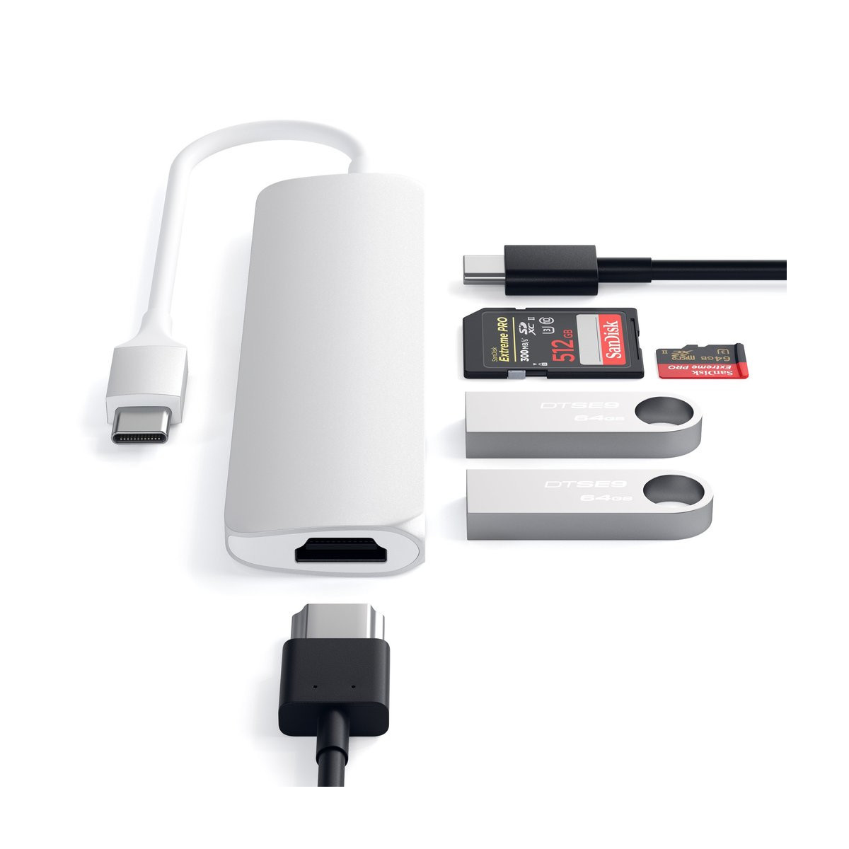 Satechi ST-SCMA2S. Tecnologia di connessione: Cablato, Interfaccia host: USB 3.2 Gen 1 (3.1 Gen 1) Type-C, Fornitura di alimentazione USB fino a: 60 W. Colore del prodotto: Argento, Tipi schede di memoria: MicroSD (TransFlash), SD, Tipologia HD: 4K Ultra HD. Tipologia alimentazione: USB. Larghezza: 27 mm, Profondità: 119 mm, Altezza: 10 mm. Quantità per pacco: 1 pezzo(i)