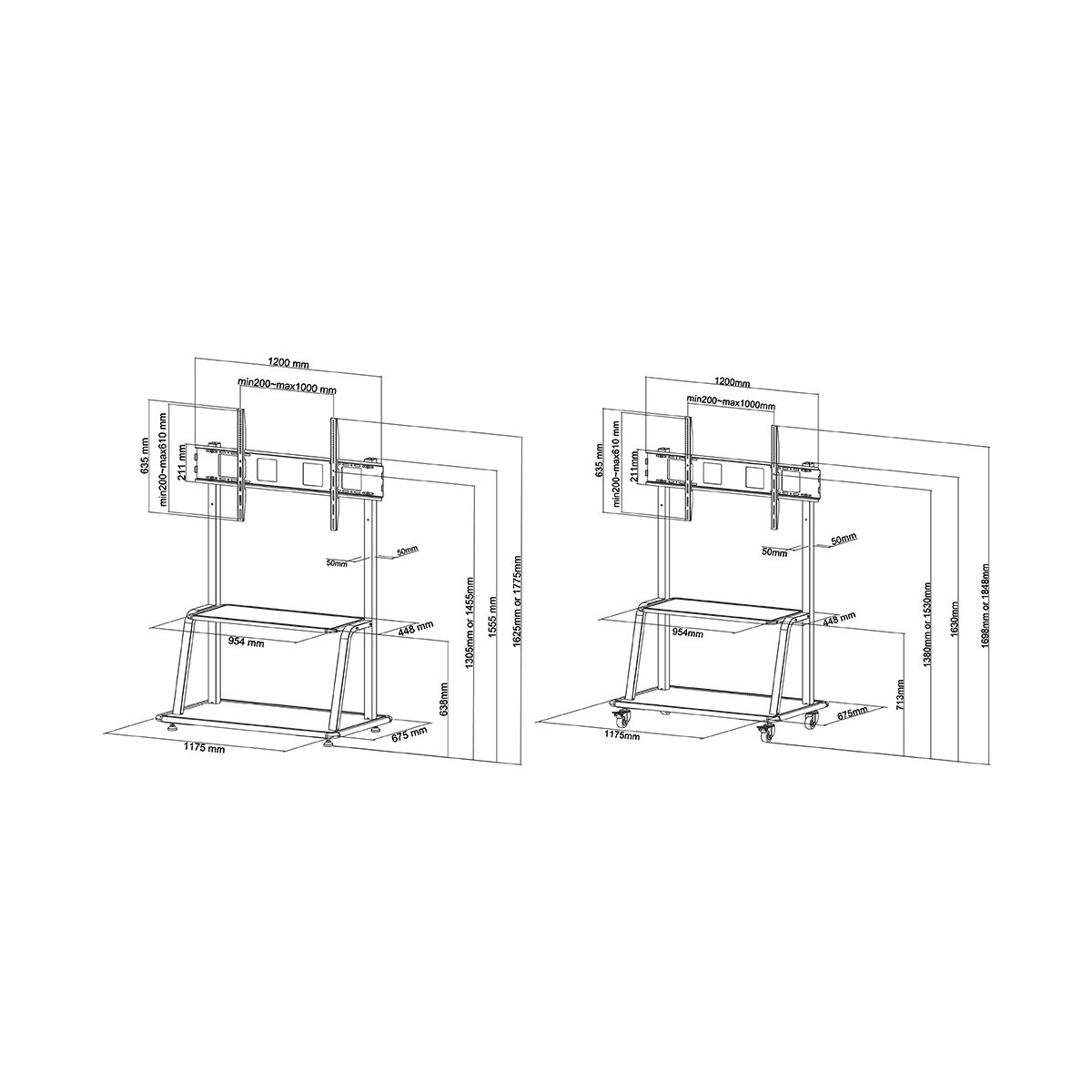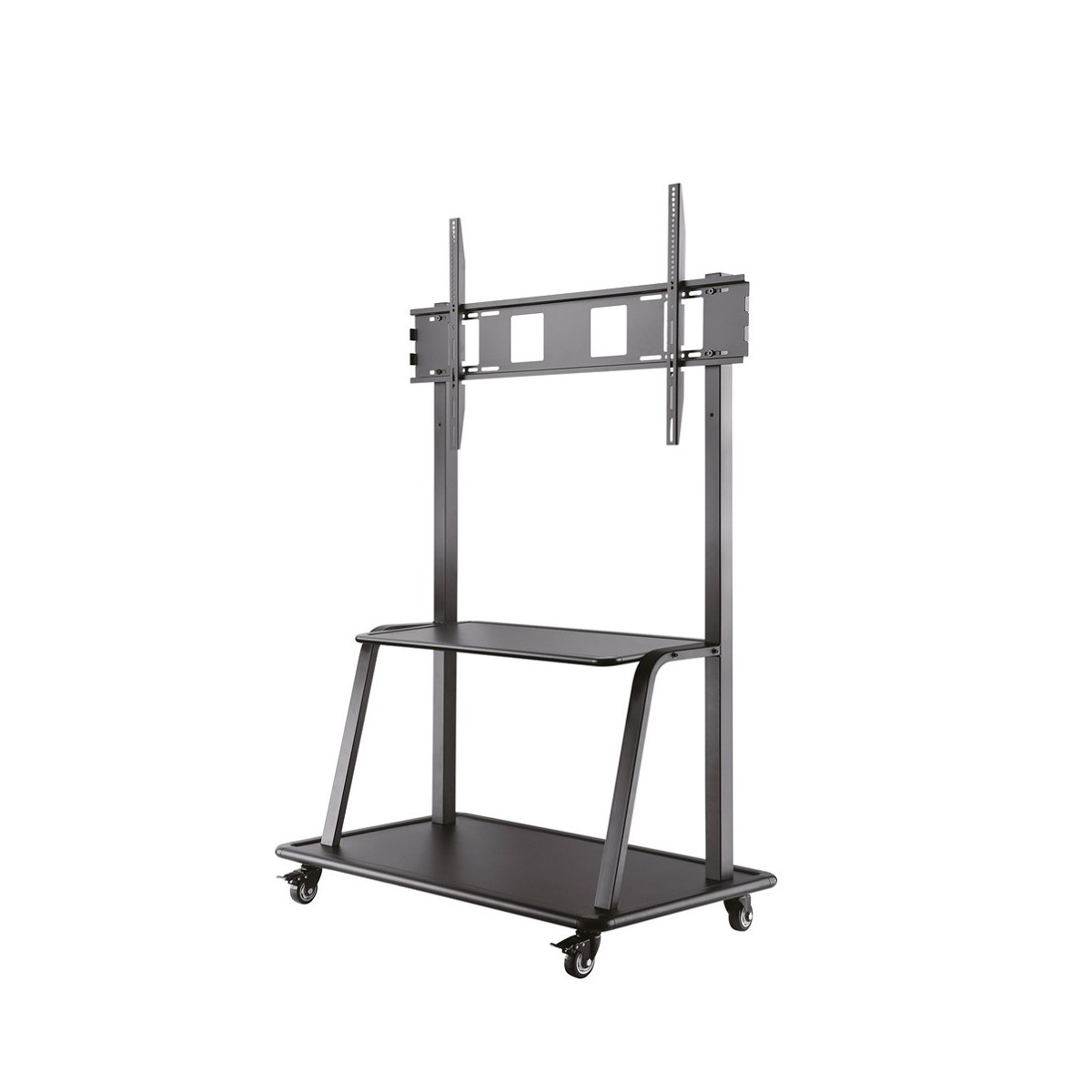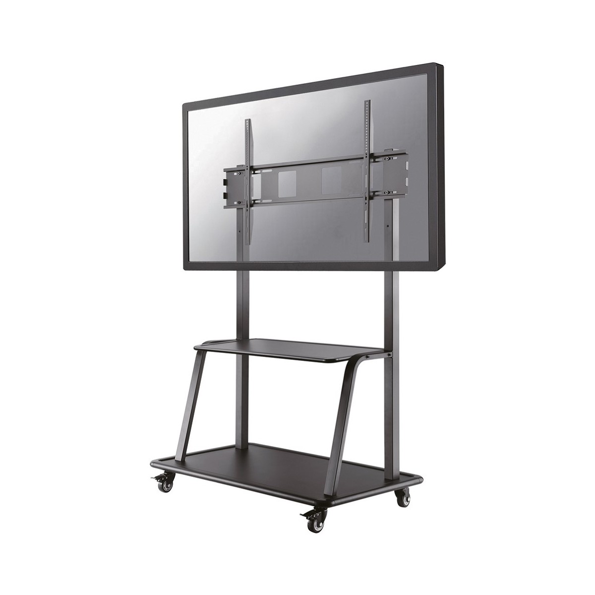 Newstar Mobiletto portatile per TV. Peso massimo (capacità): 150 kg, Capienza minima dimensioni dello schermo: 152,4 cm (60"), Capienza massima dimensioni dello schermo: 2,67 m (105"), Compatibilità interfaccia di montaggio (min): 200 x 200 mm, Compatibilità interfaccia di montaggio (max): 1000 x 600 mm. Regolazione altezza. Colore del prodotto: Nero