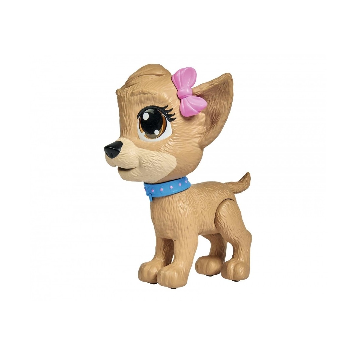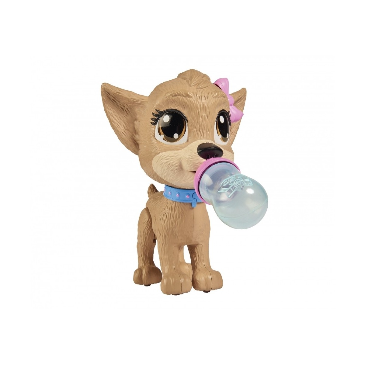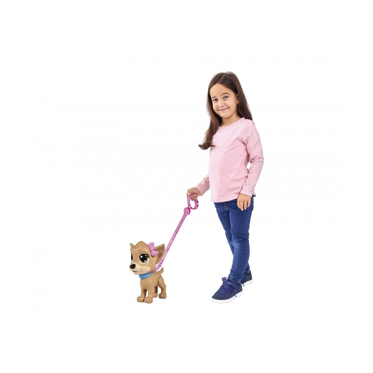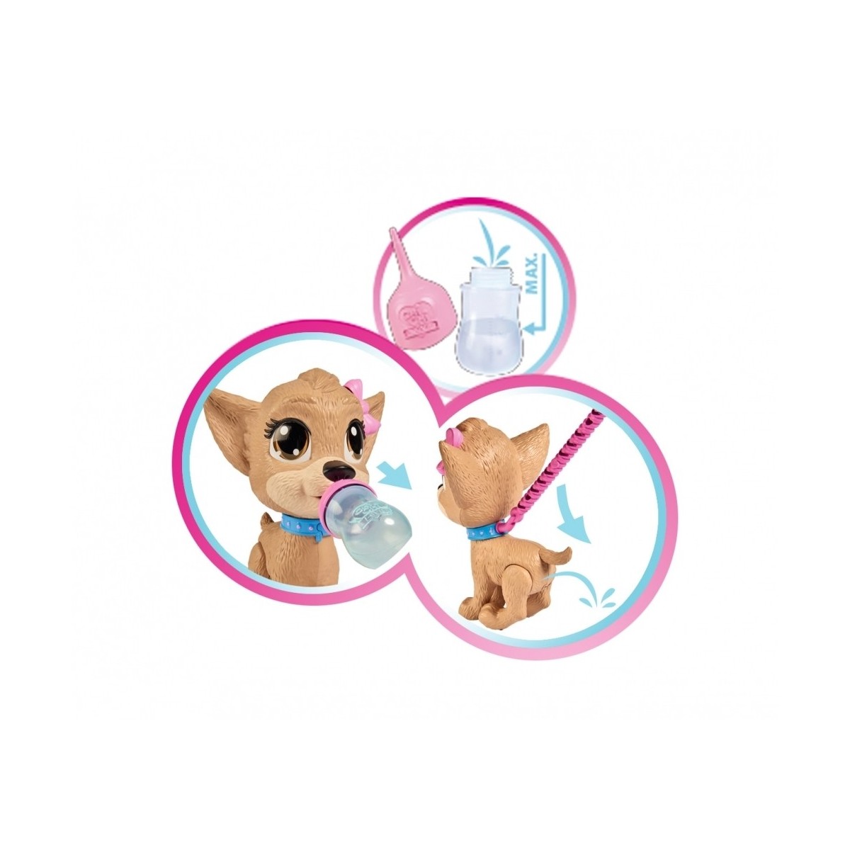 Chi Chi è un tenero cucciolo da accudire; portalo a passeggio, con il suo guinzaglio; dagli da bere dalla bottiglietta inclusa ma attenzione quando si siede…fa Pii Pii!