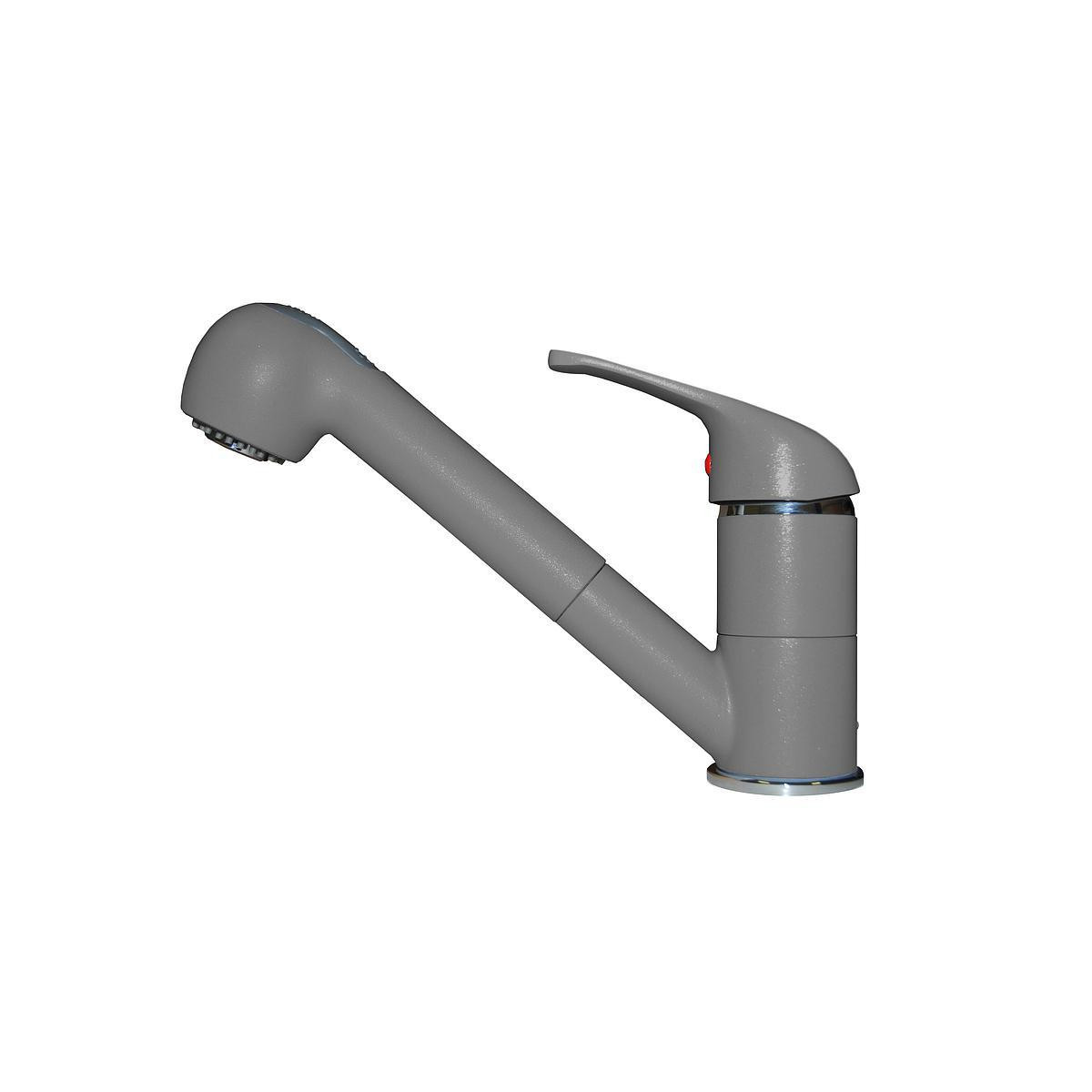- Miscelatore monocomando con canna girevole e doccetta estraibile con commulatore del flusso da getto a pioggia.