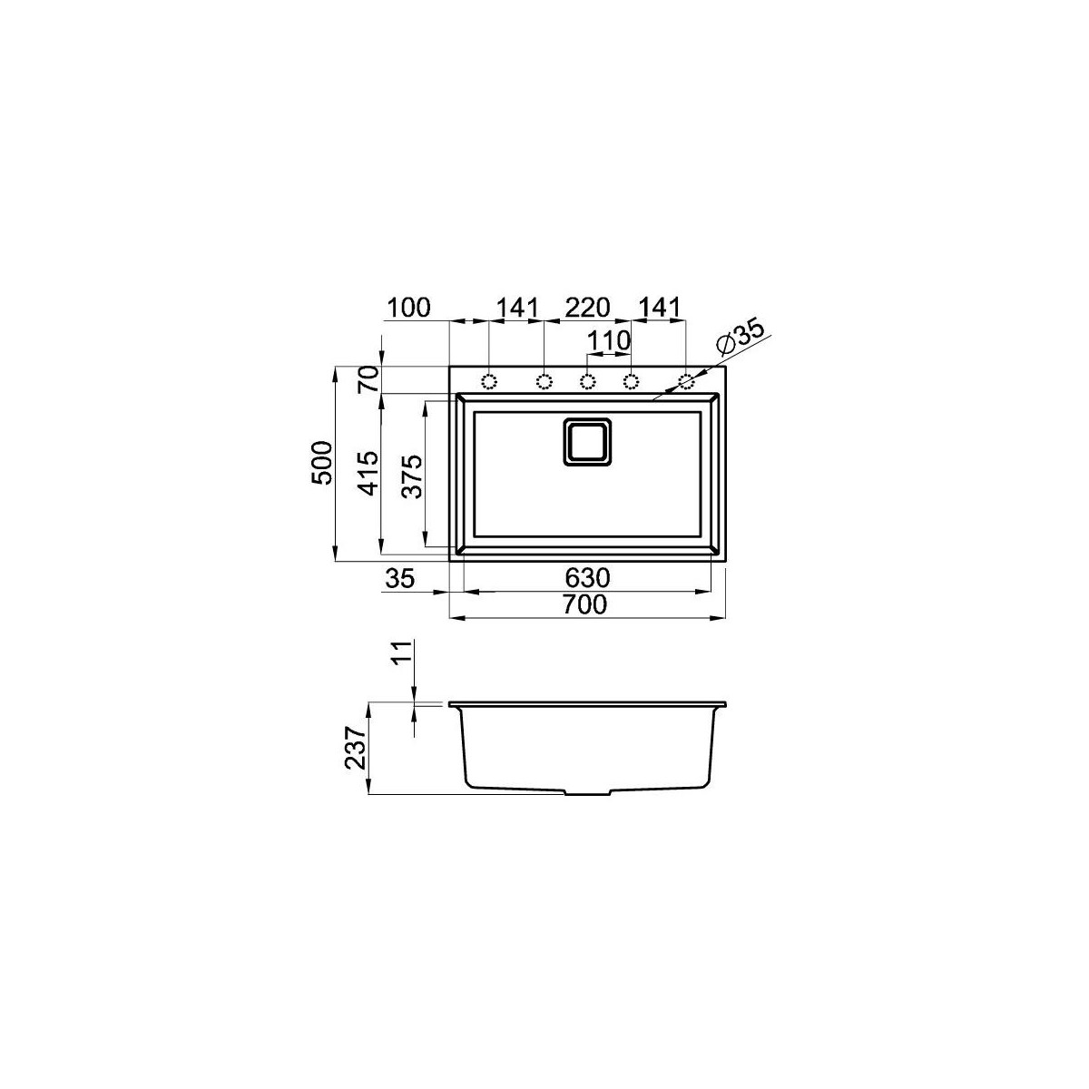 | Dimensioni prima vasca (LxL) | 630 x 375 mm |