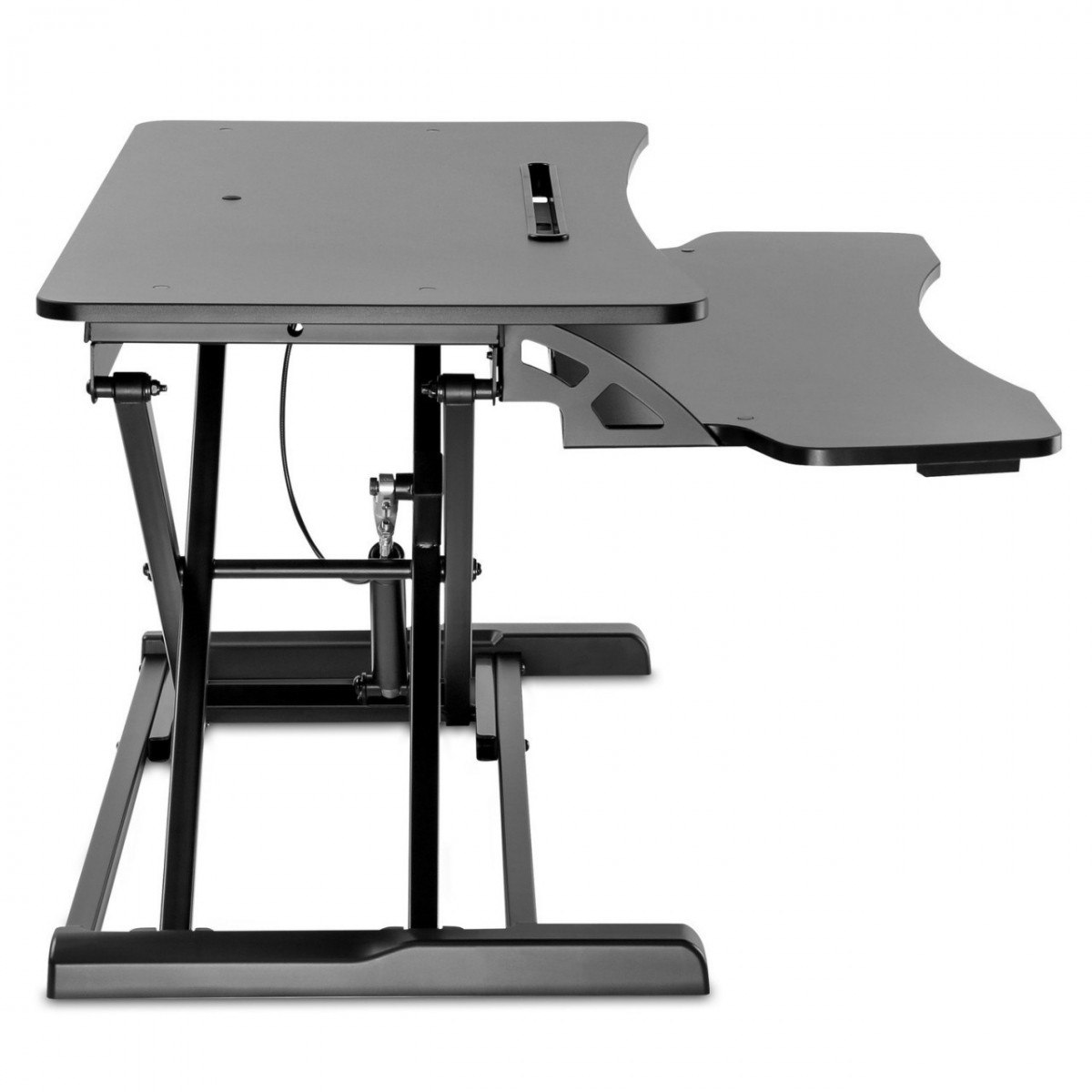 La workstation desktop Essential in piedi/seduti di V7 assicura un modo semplice per passare dalla posizione seduta a quella in piedi alla scrivania. Con una superficie superiore per il display e scrivania inferiore per tastiera e mouse spaziosa. Viene spedita interamente assemblata e non richiede un montaggio per essere installata, rendendo la sistemazione semplice e veloce. È dotata di un meccanismo di sollevamento a molla che permette di passare facilmente da seduti a in piedi in pochi secondi. Grazie alla stazione di lavoro per desktop seduti/in piedi di V7 è facile cominciare ad apprezzare i vantaggi per la salute del lavorare in piedi.