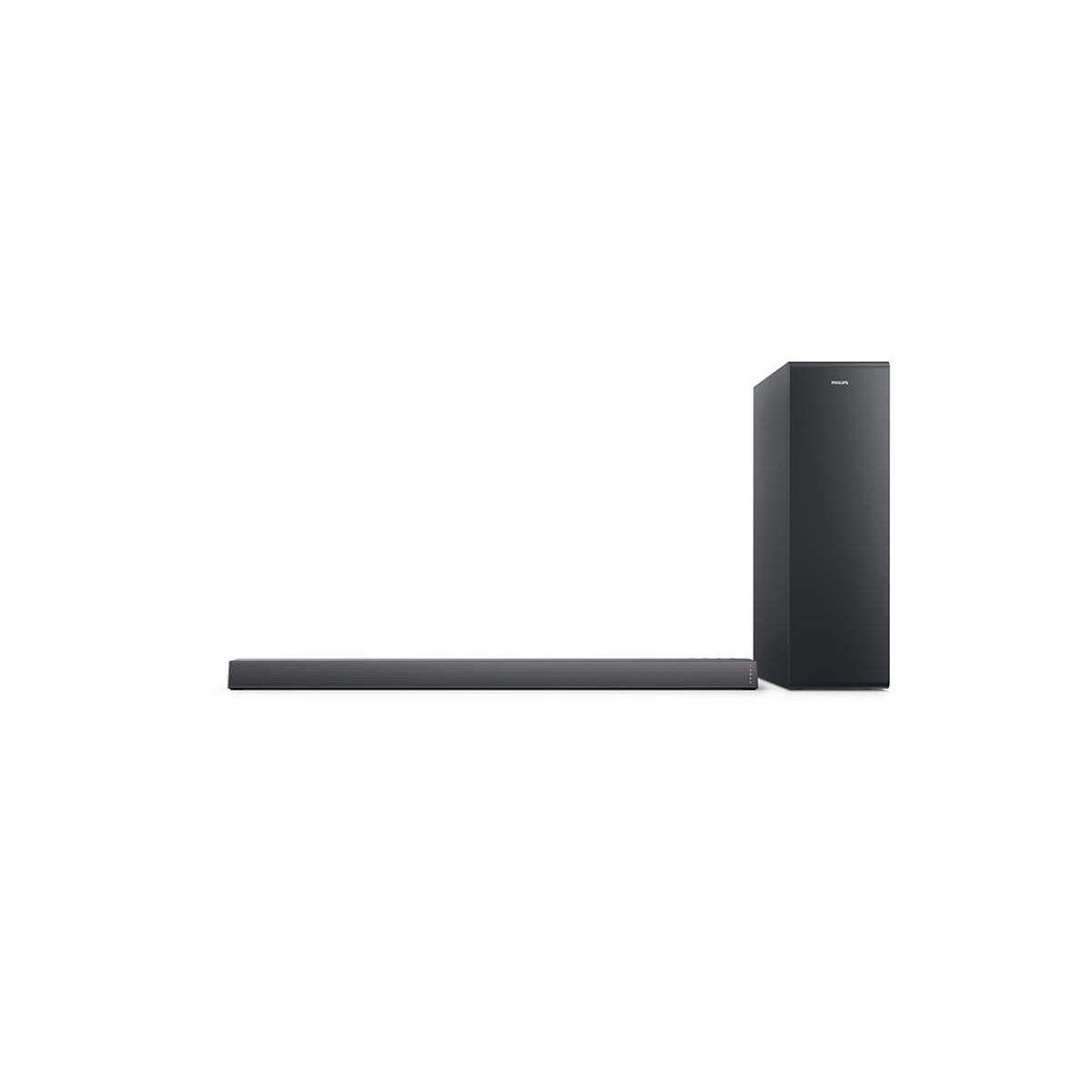 Philips TAB6305/10. Sistema audio: 2.1 canali, Potenza in uscita (RMS): 140 W, Formato audio integrato: Dolby Digital. Potenza RMS dell'altoparlante soundbar: 80 W. Tipo di subwoofer: Subwoofer attivo, Connettività del subwoofer: Senza fili, Potenza RMS subwoofer: 60 W. Colore del prodotto: Nero, Formati audio supportati: FLAC,LPCM,MP3,SBC,WAV, Consumer Electronics Control (CEC): EasyLink. Tecnologia di connessione: Con cavo e senza cavo