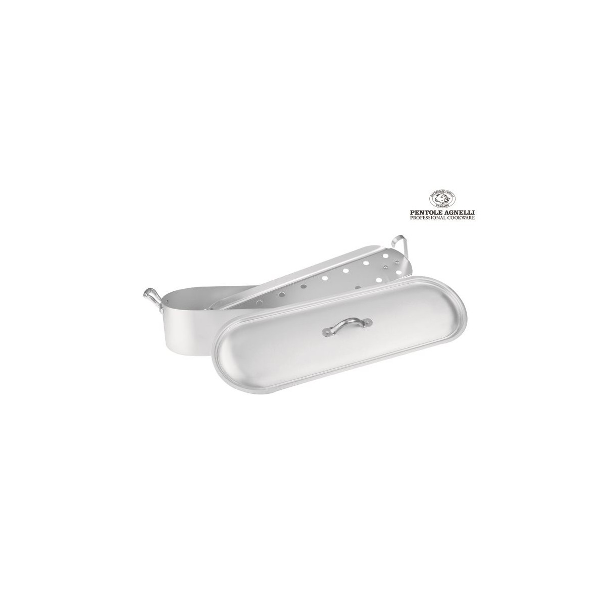 Pentole Agnelli 'Family Cooking Alluminio', Pesciera con coperchio e griglia 45 x 15,2 cm