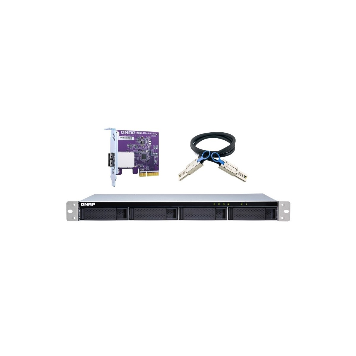 L’alloggiamento di archiviazione JBOD in formato rack TL-R400S consente di eseguire il backup e di espandere il NAS QNAP, i computer e server Windows e Ubuntu. Il TL-R400S dispone di quattro unità baie SATA 6Gb/s da 3,5”, il suo design rack a profondità ridotta è perfetto per l’installazione del TL-R400S in un rack compatto, o in aree con molti cavi. TL-R400S dispone di una scheda QXP PCIe per il collegamento dell’alloggiamento utilizzando un cavo SFF-8088 (o SFF-8644). Offre prestazioni di lettura/scrittura affidabili per attività di archiviazione e backup più semplici.
