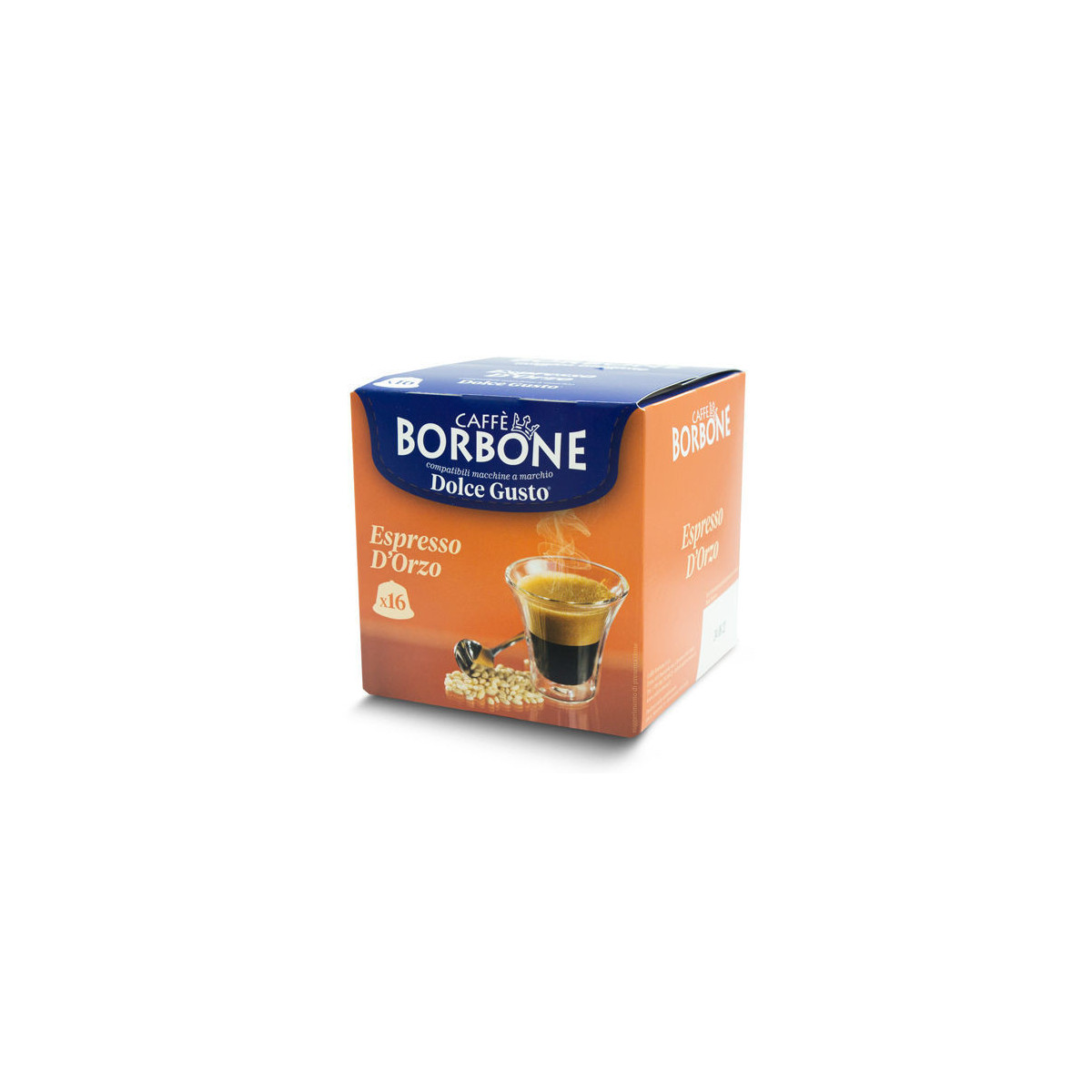 Caffe Borbone Espresso D'Orzo. Tipo di prodotto: Capsule caffè, Tipologie di bevande: Orzo, Sistema caffè in capsule/cialde: Dolce Gusto. Tipo di imballo: Scatola. Quantità per pacco: 16 pezzo(i)