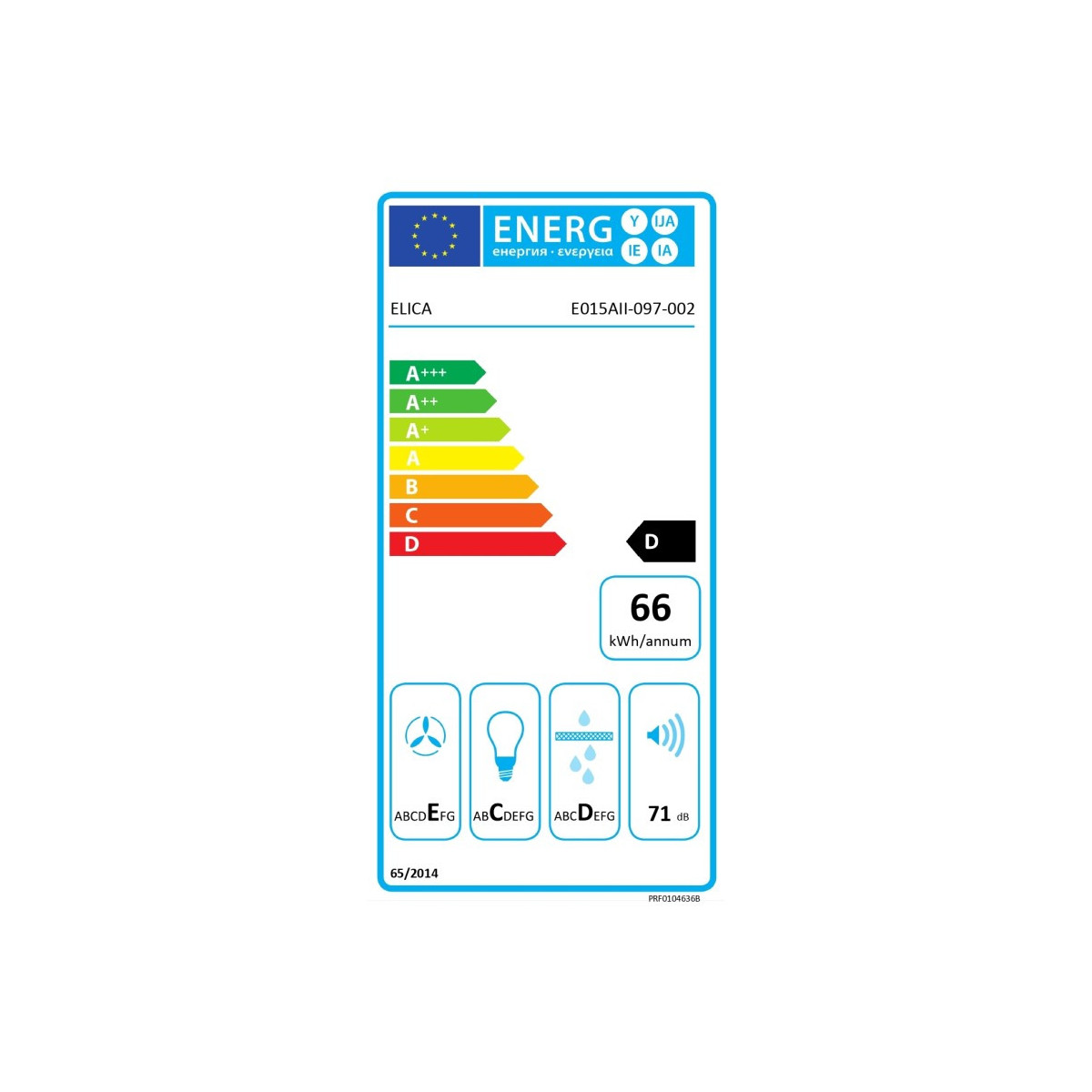 | Classe di efficienza di filtro del grasso | D |