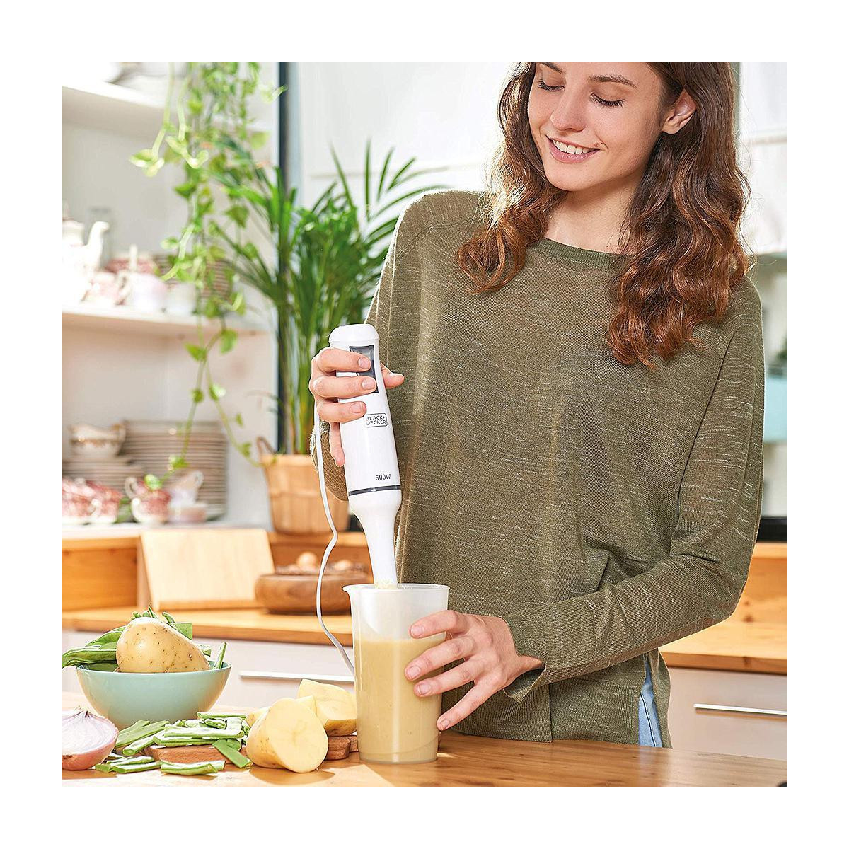 Black & Decker BXHB500E - Frullatore ad Immersione, 500 W, 4 Lame con Bicchiere Graduato