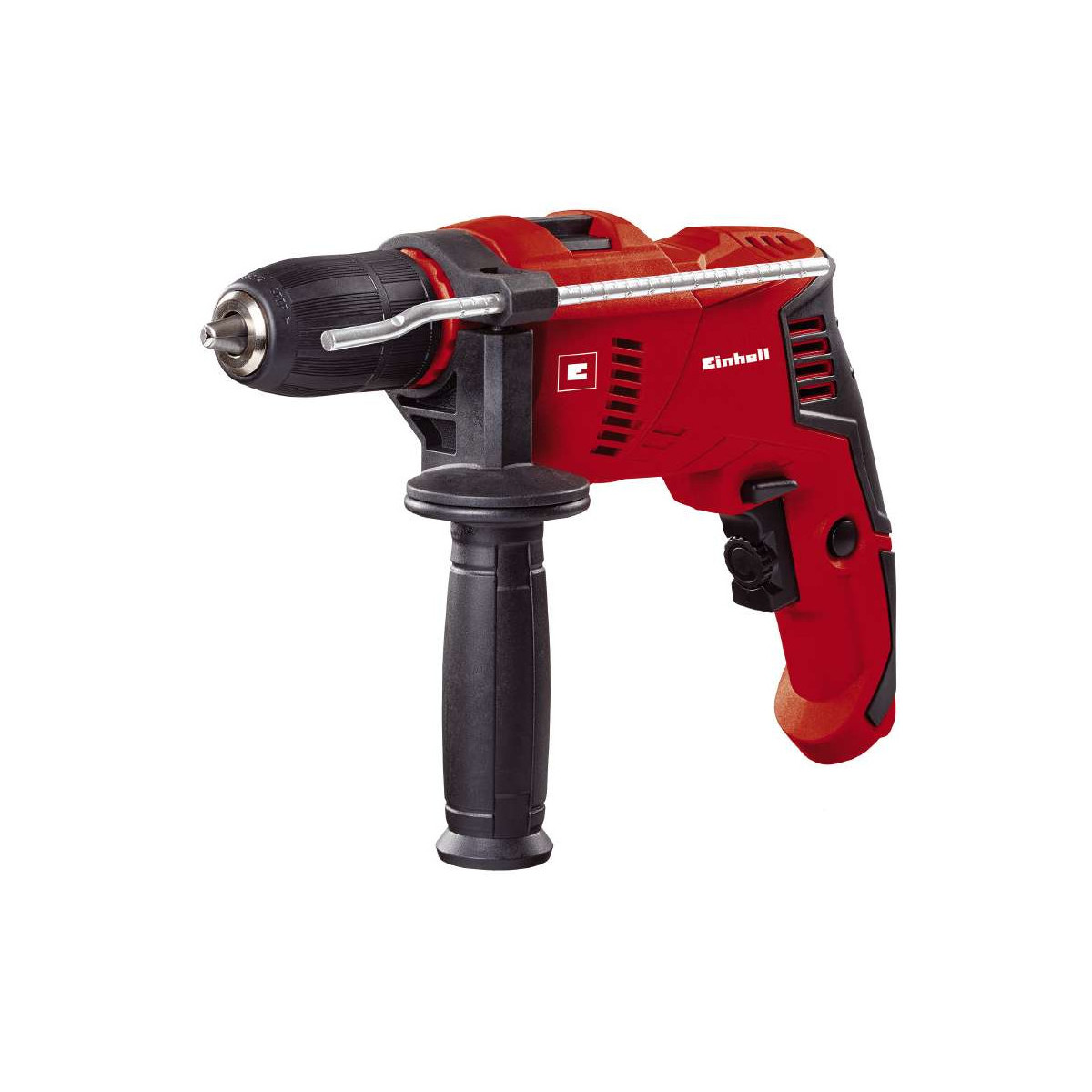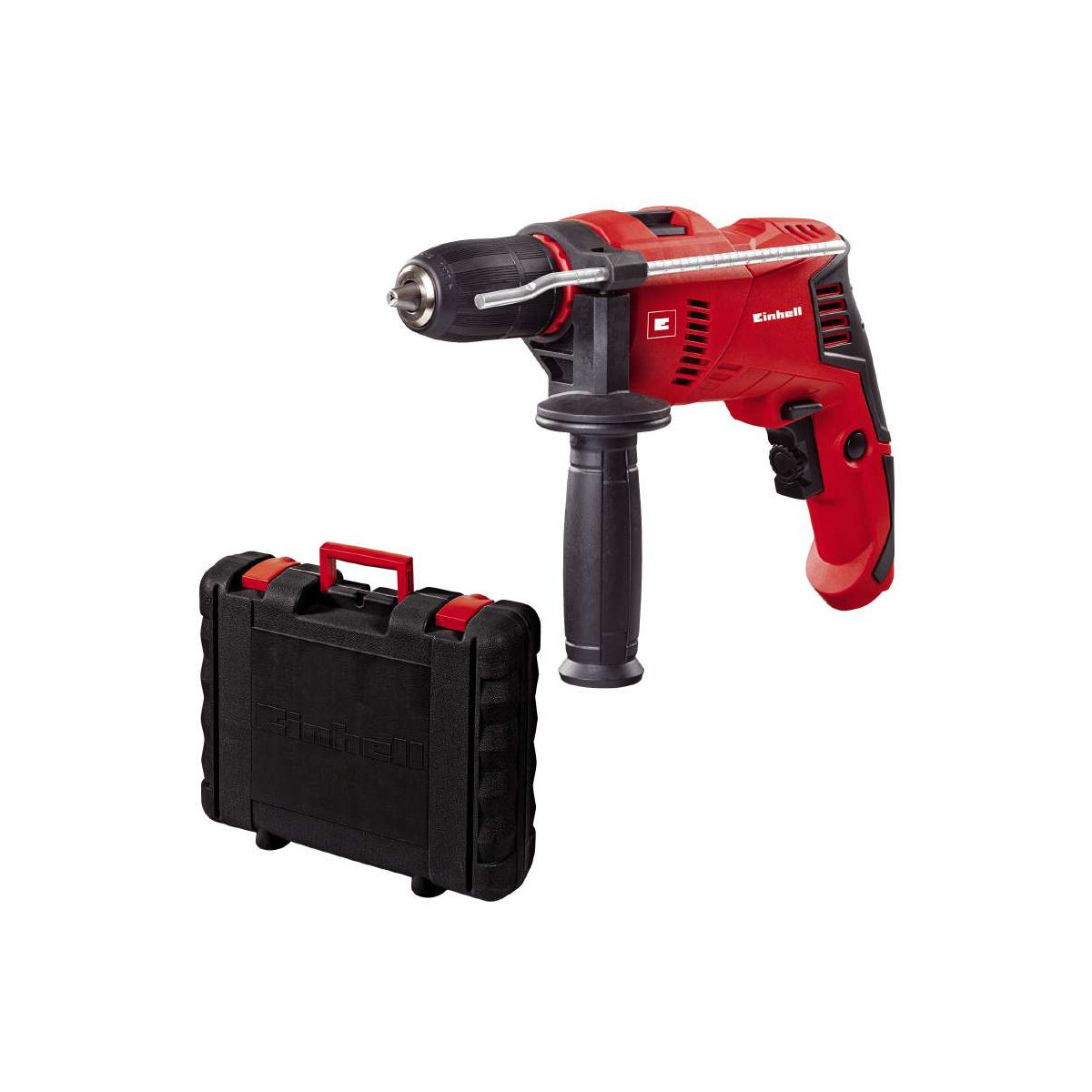 Il trapano a percussione TE-ID 500 E è un apparecchio maneggevole di dimensioni compatte che risponde alle esigenze di avvitamento, foratura e trapanatura a percussione degli appassionati di fai-da-te per lavori in casa, in officina e in garage. Il mandrino autoserrante di alta qualità consente un facile cambio utensile. L?asta di profondità di perforazione in metallo a regolazione continua garantisce una profondità costante dei fori. Il trapano a percussione TE-ID 500 E è dotato di impugnature ergonomiche antiscivolo che consentono un grande comfort di utilizzo. L?impugnatura supplementare è inoltre fissata saldamente mediante nervature di sicurezza. Il numero di giri della robusta trasmissione in metallo di lunga durata consente un adattamento in qualsiasi situazione al materiale da lavorare tramite la pratica funzione di preselezione. Tramite il collo di serraggio da 43mm l?apparecchio può anche essere utilizzato in supporti di foratura. Il TE-ID 500 E può essere riposto e trasportato nella pratica valigetta.