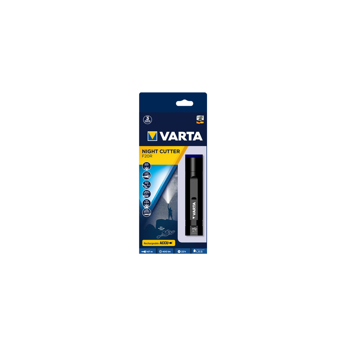 Varta Night Cutter F20R Torcia a mano Nero LED