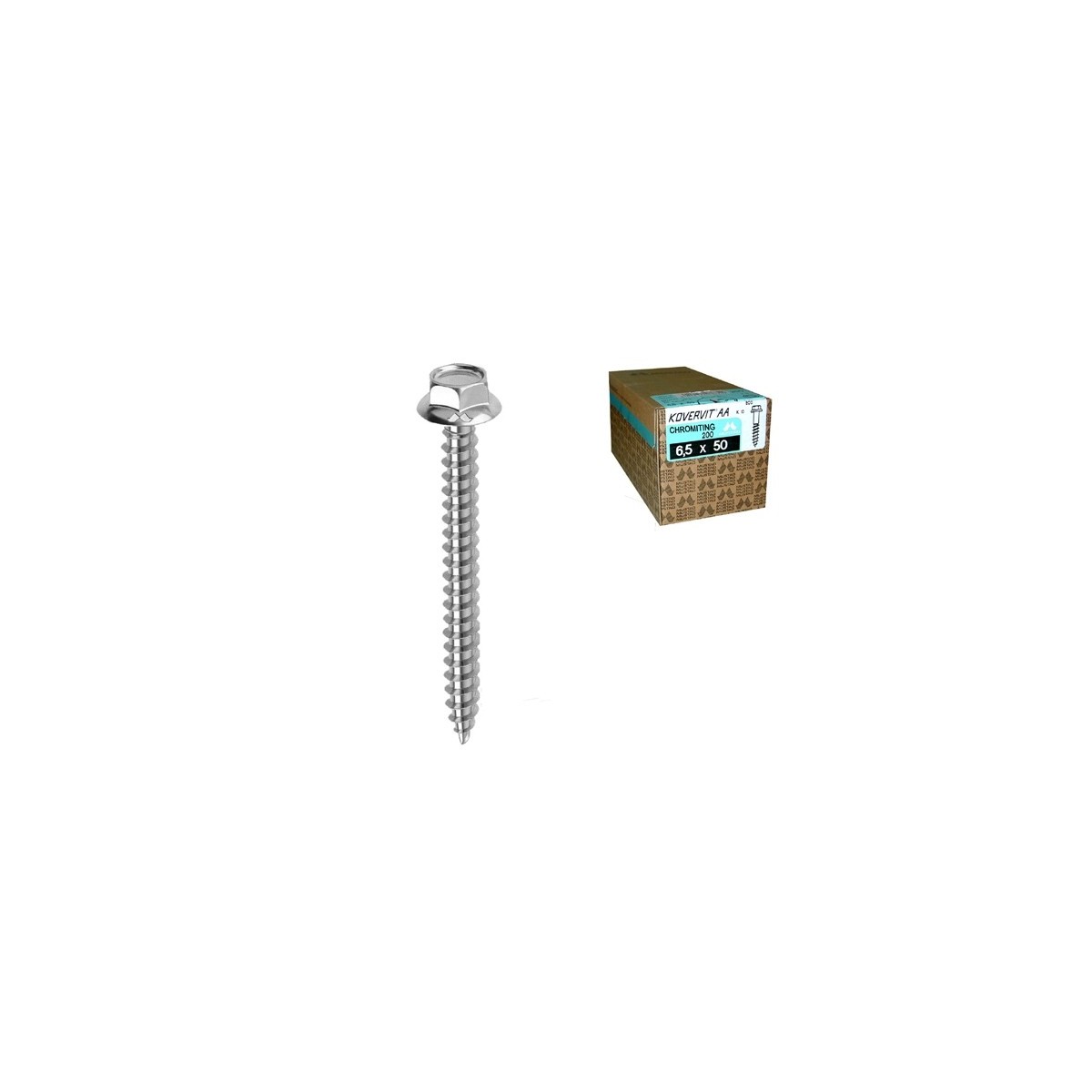 Viti autofilettanti per edilizia Testa esagonale con collare 6,5X090 mm Cromo lucido "Chromiting" Kovervit AA
