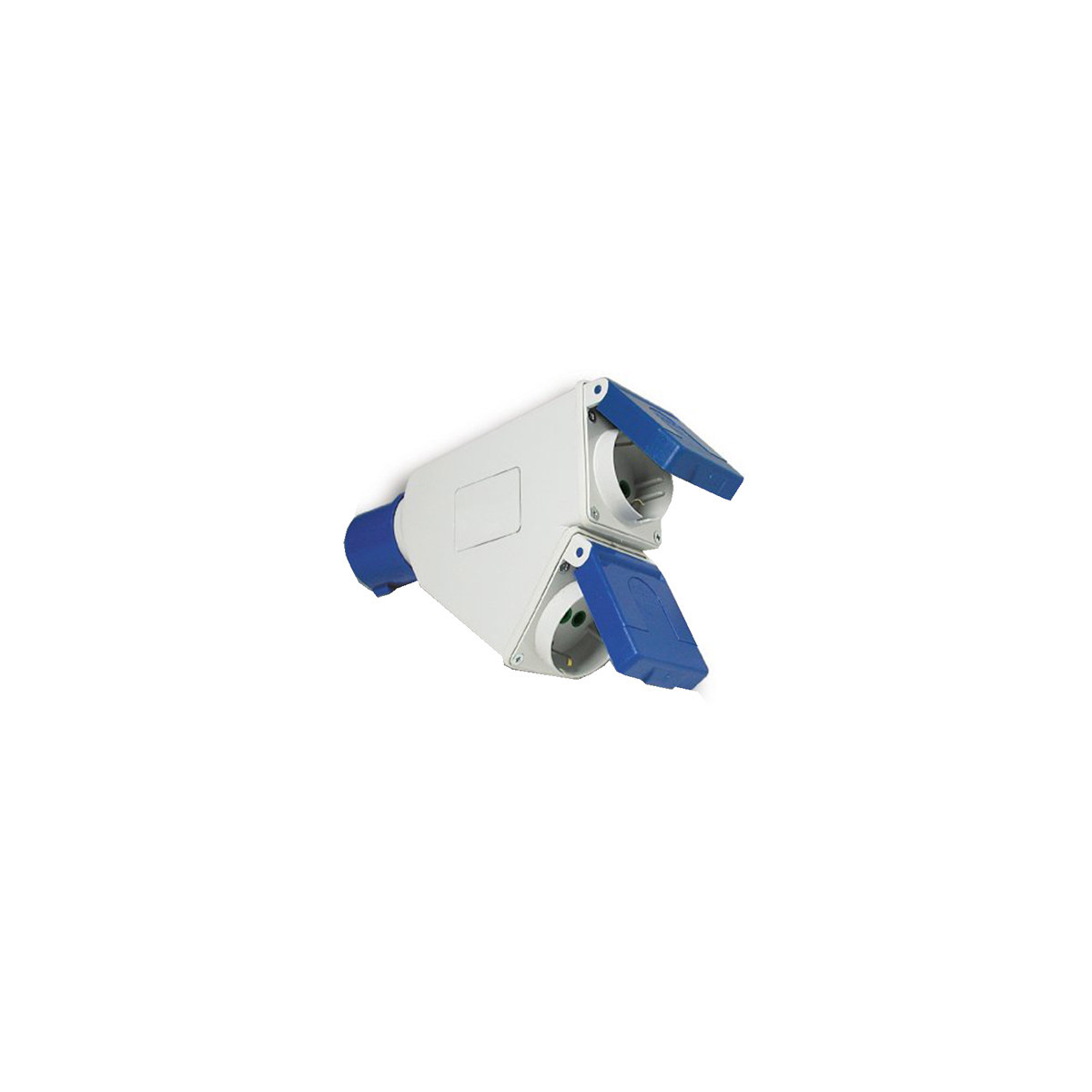 Adattatore industriale con spina CEE 2P+T 16A CEE blu 2 prese bipasso italo/tedesche 2P+T 16A IP44 220-230 V Blu/bianco 73104