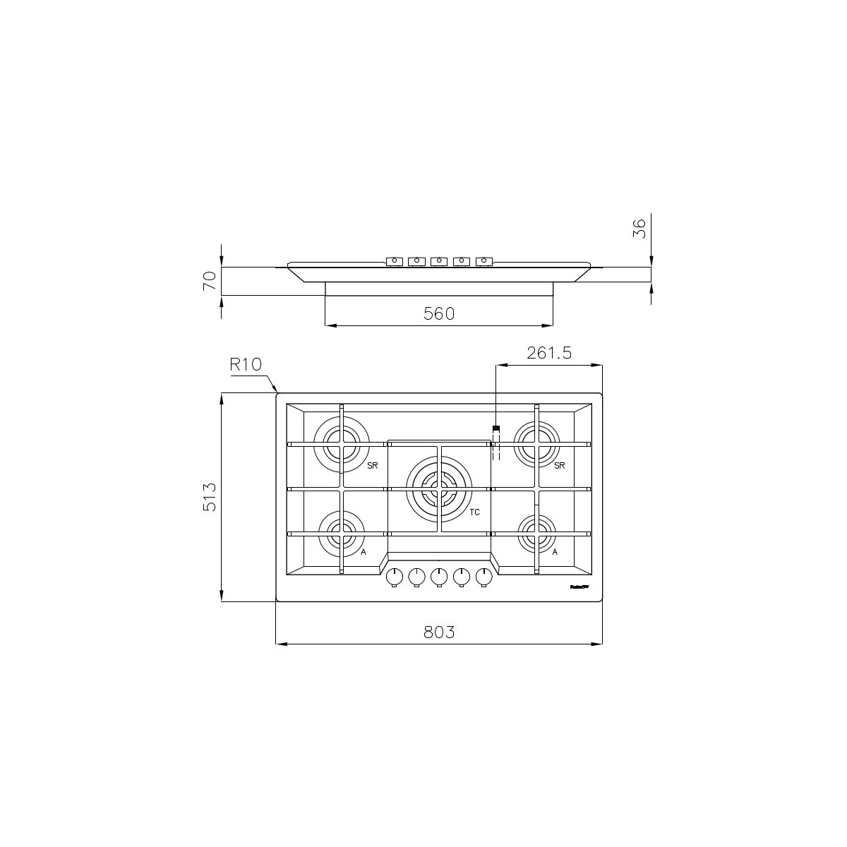Foster 7600 666 - Piano Cottura a Gas, 5 Fuochi, 80.3 cm, Acciaio Inox