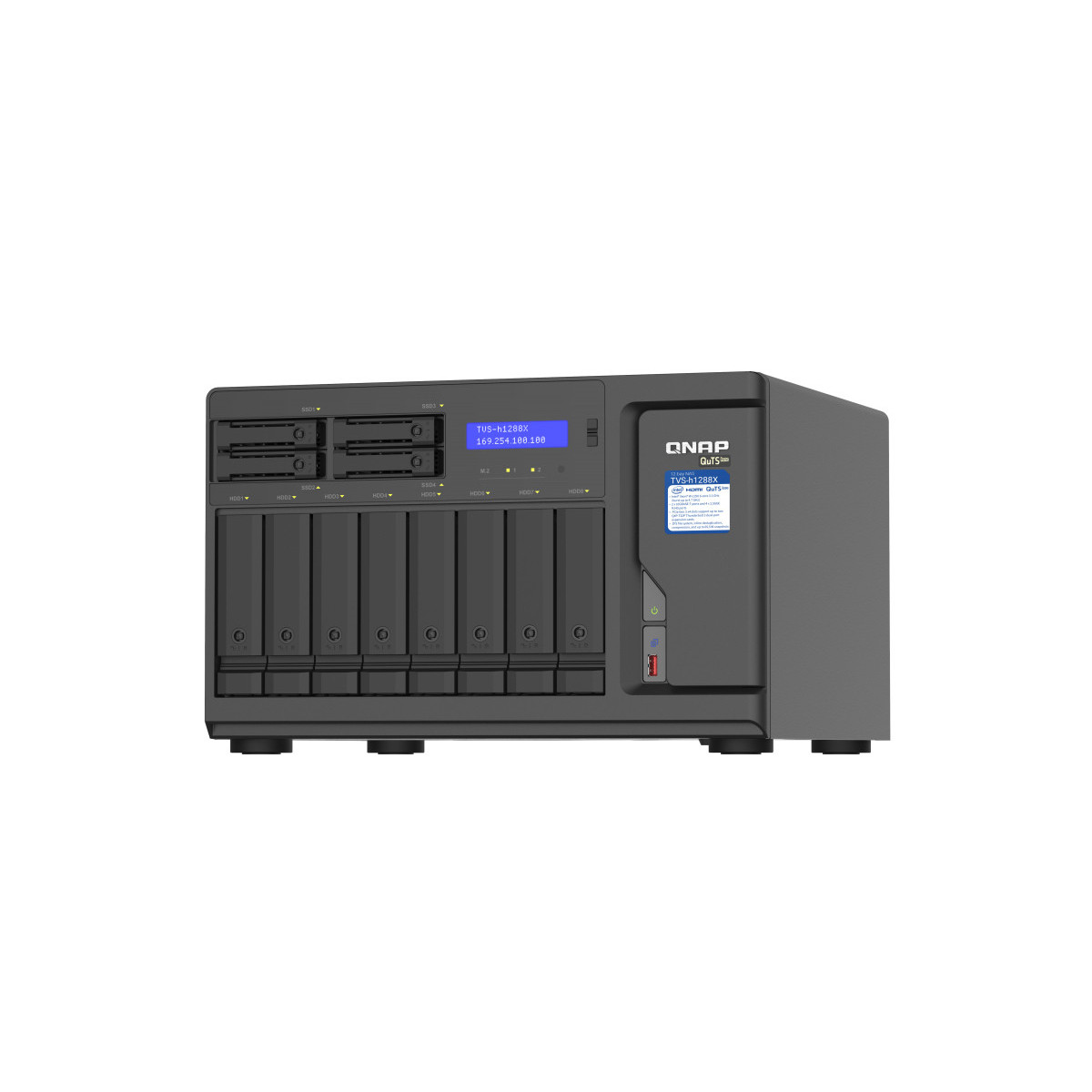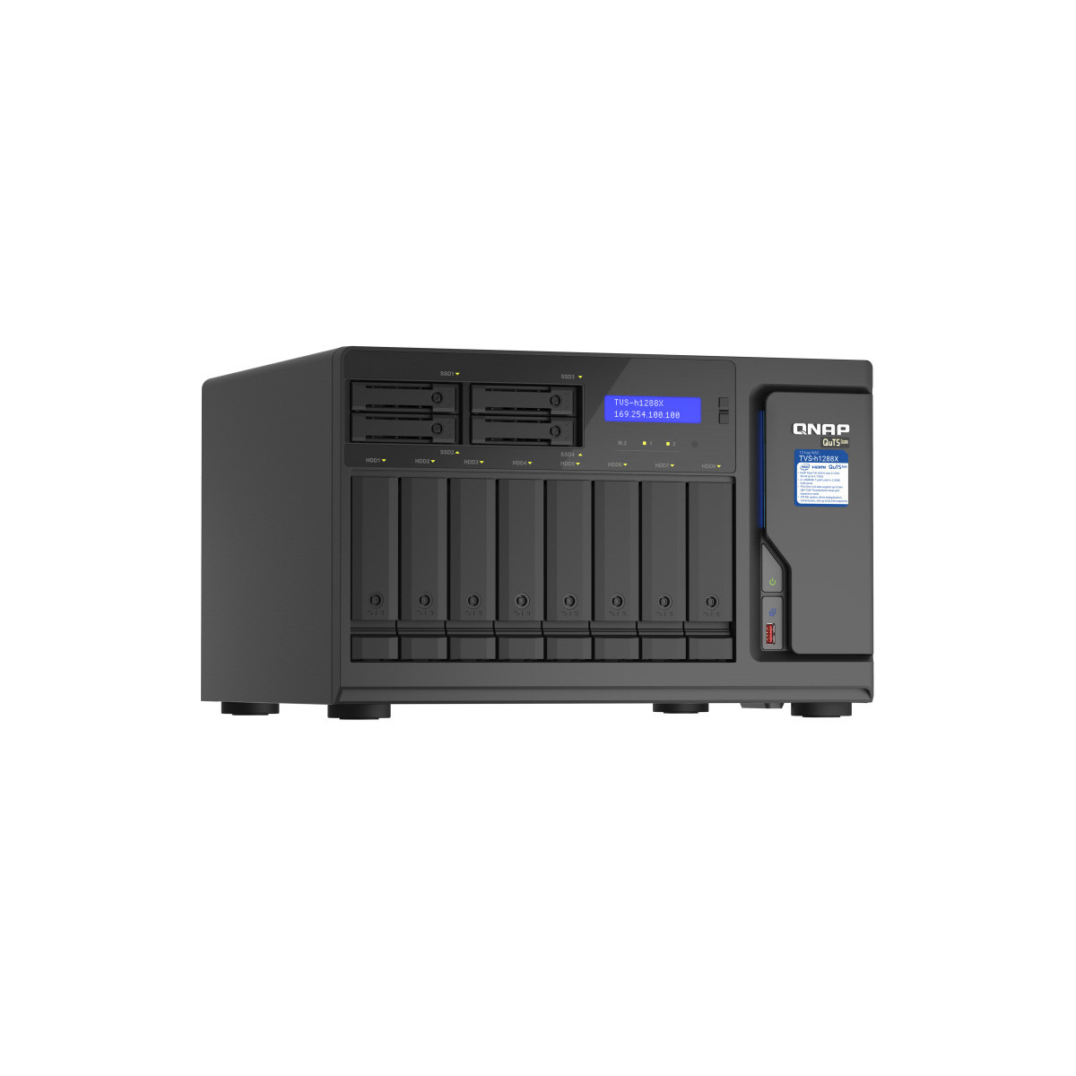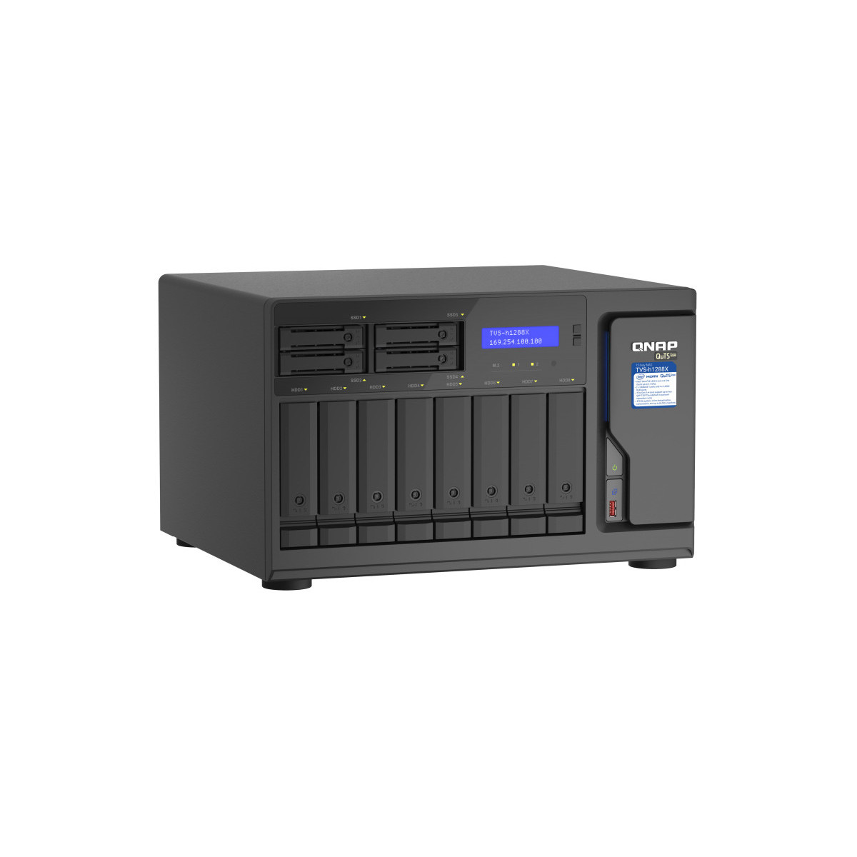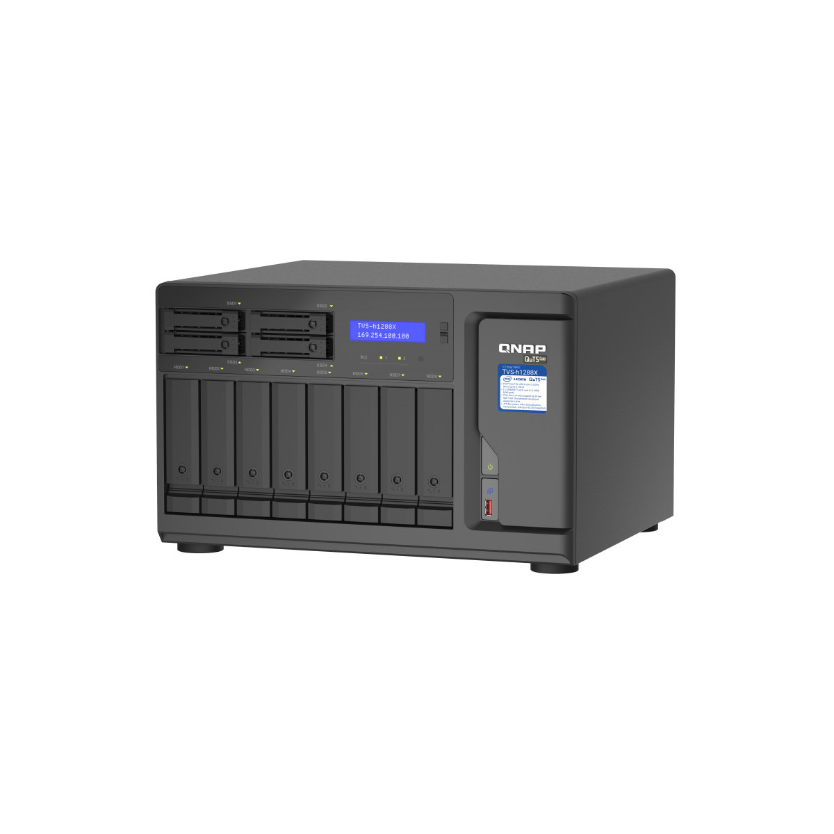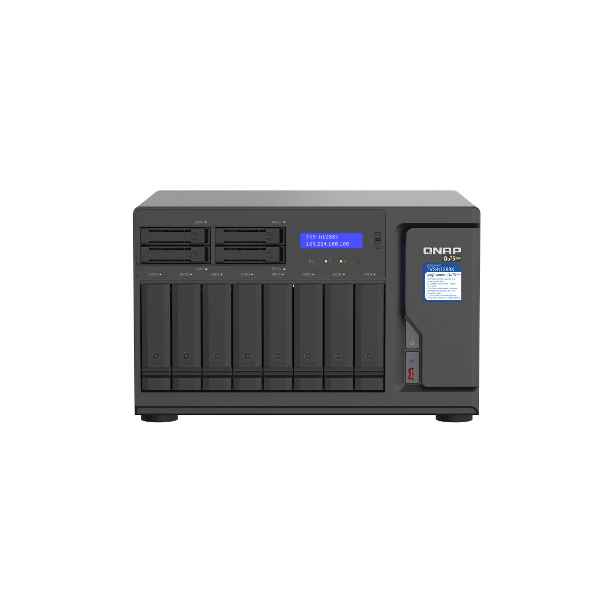 QNAP TVS-H1288X - Server NAS - 12 alloggiamenti - SATA 6Gb/s - RAID 0, 1, 5, 6, 10, 50, JBOD, sostituzione a caldo, hot spare 6, 60, hot spare 10, RAID TP - RAM 16 GB - Gigabit Ethernet / 2.5 Gigabit Ethernet / 10 Gigabit Ethernet - iSCSI