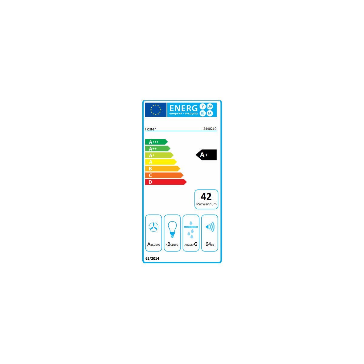 Foster 2440 210 - Cappa Aspirante a Parete S4001, 1501-2100 mm, 700 mc/h, Acciaio Inox, Classe A+