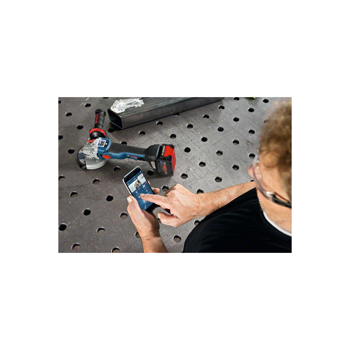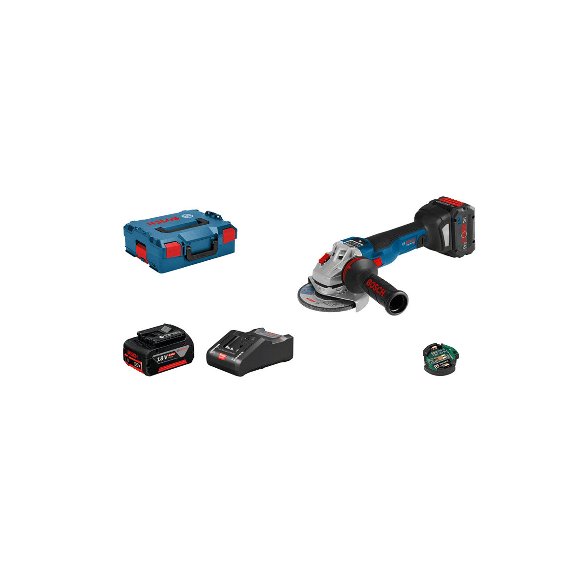 Bosch GWS 18 V-10 SC - Smerigliatrice Angolare 18V, 2x8,0Ah, Ø 125 mm, 5 Accessori, Caricabatteria, L-Boxx, Bluetooth
