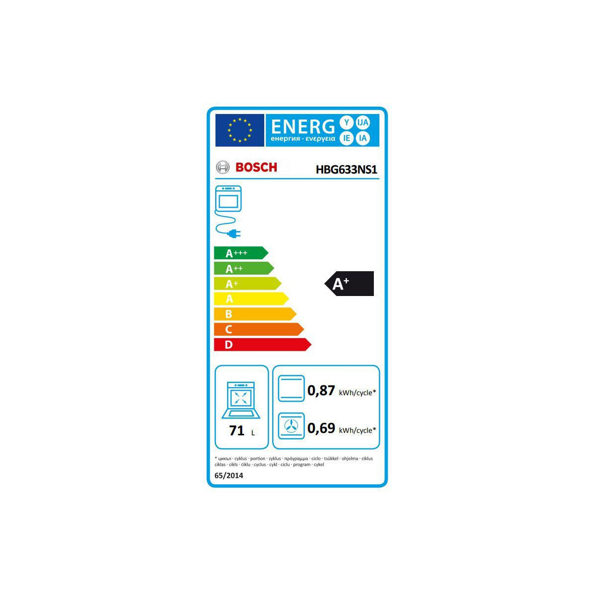 | Capacità netta del forno | 71 L |
