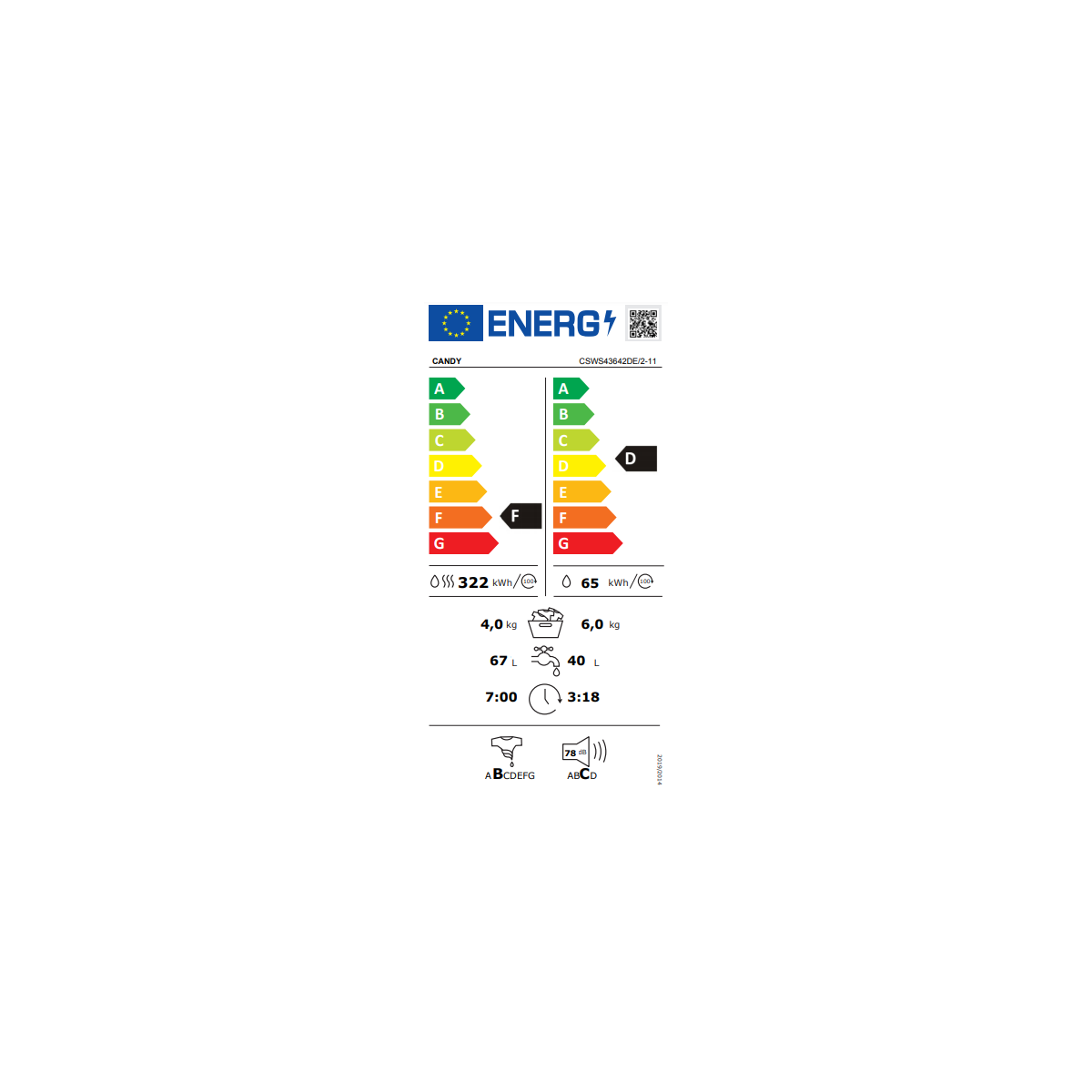 | Classe di efficienza energetica( lavaggio e asciugatura) | F |