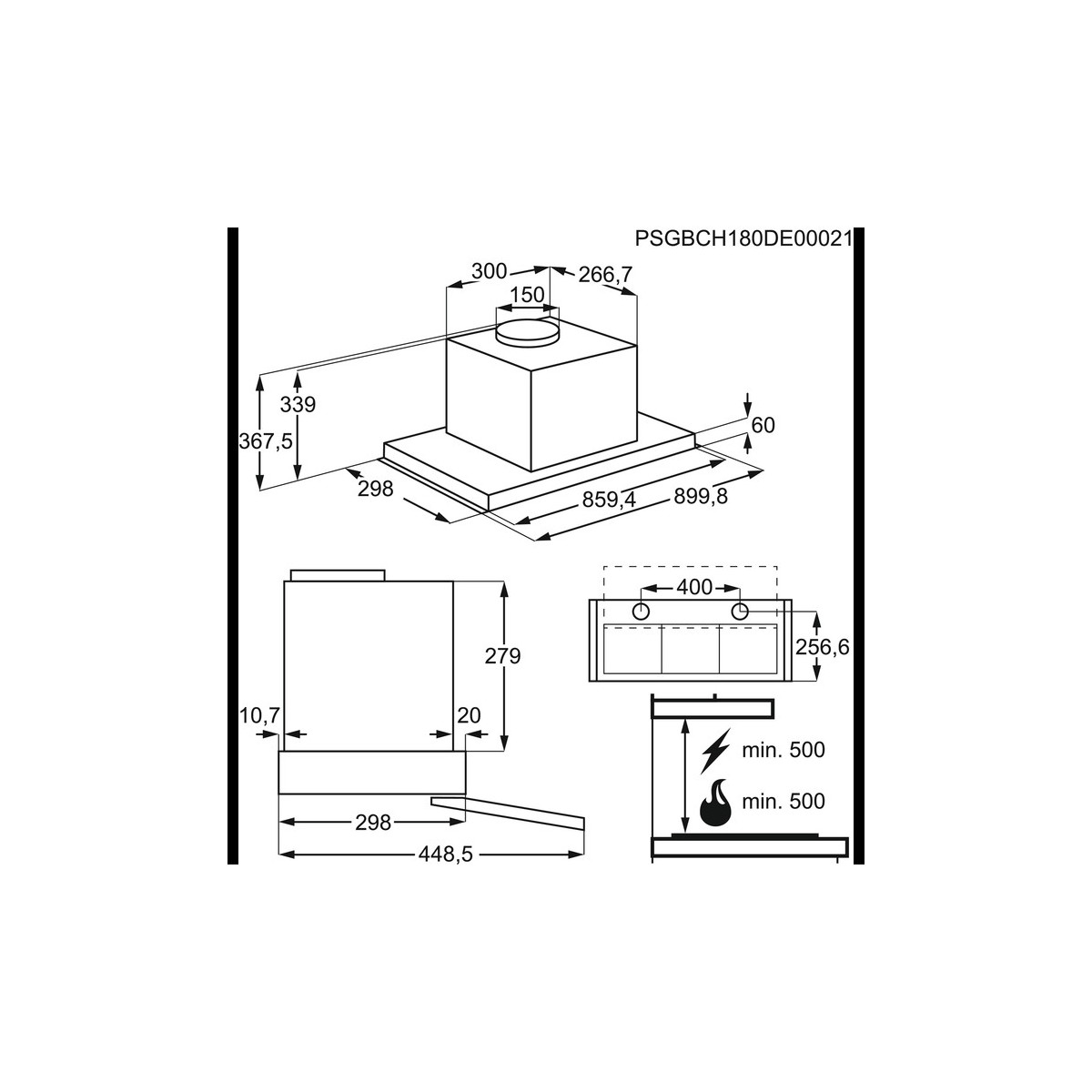 Distanza minima dal piano: 50 cm
