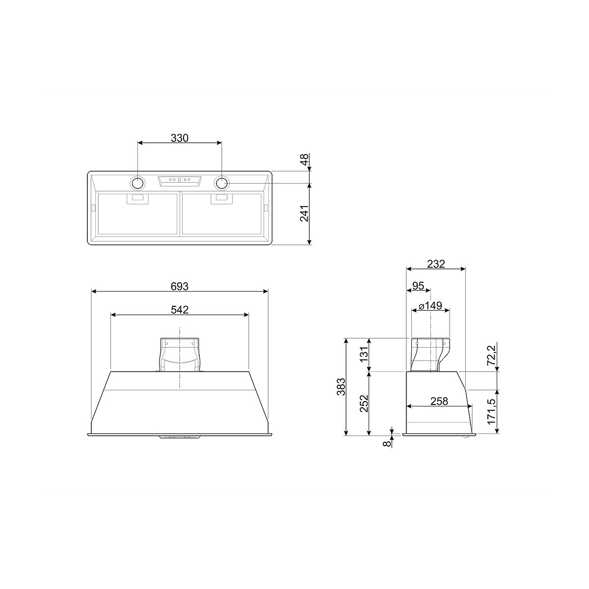 Larghezza cappa: 70 cm