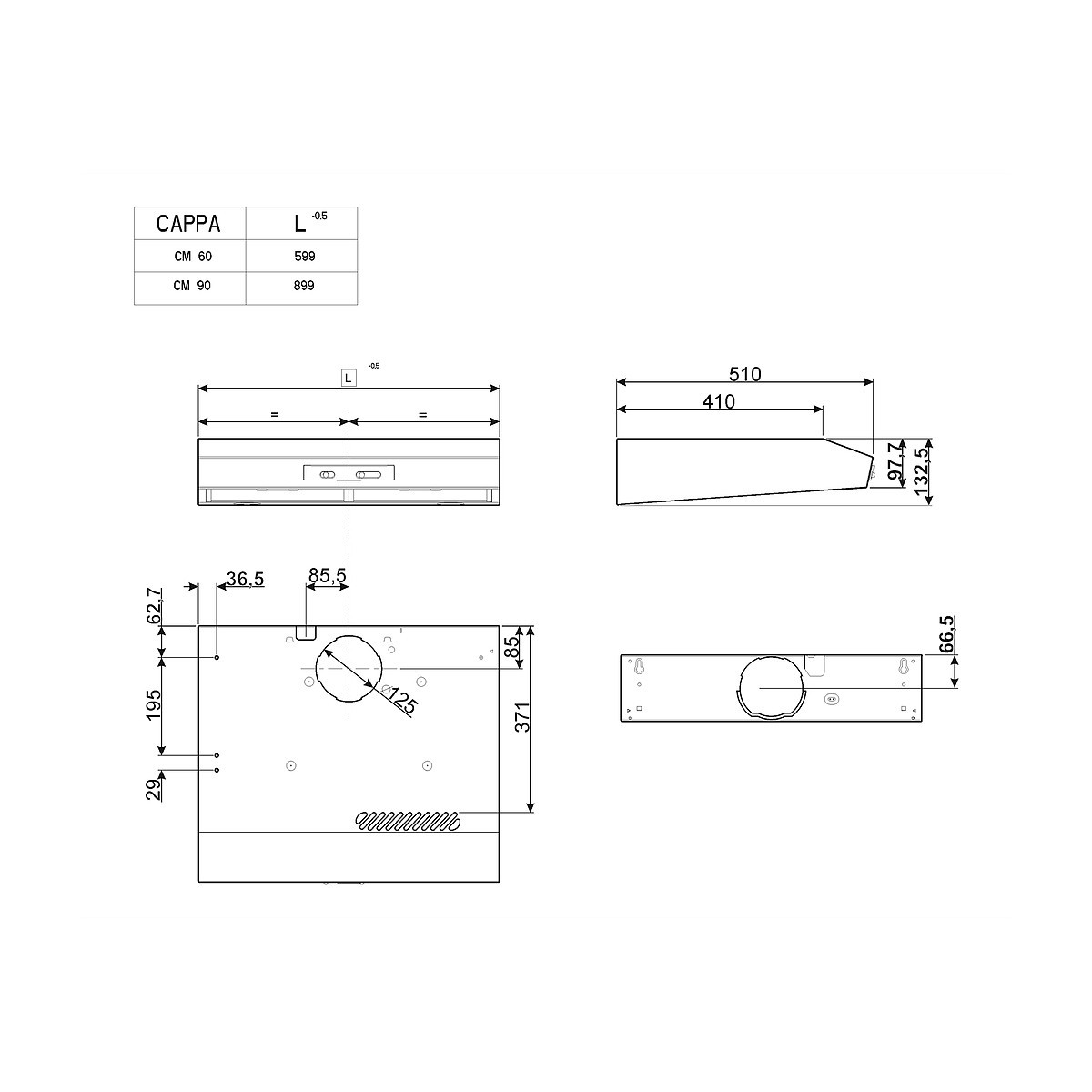 Larghezza cappa: 60 cm