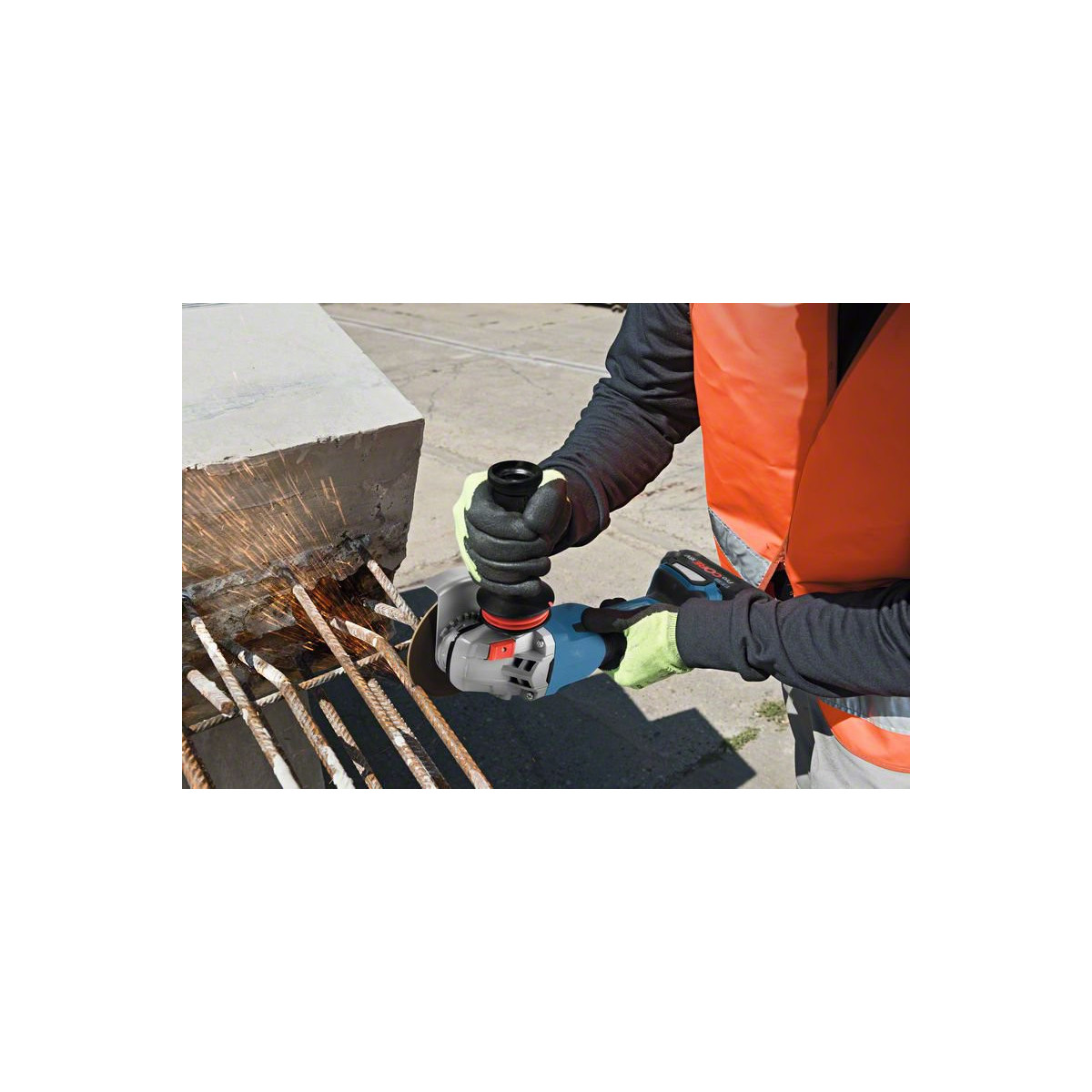 La GWS 18V-15 C Professional offre inoltre: numero di giri costante, protezione dal sovraccarico, cuffia di protezione autoserrante, protezione contro il riavvio accidentale, avviamento graduale e Vibration Control.