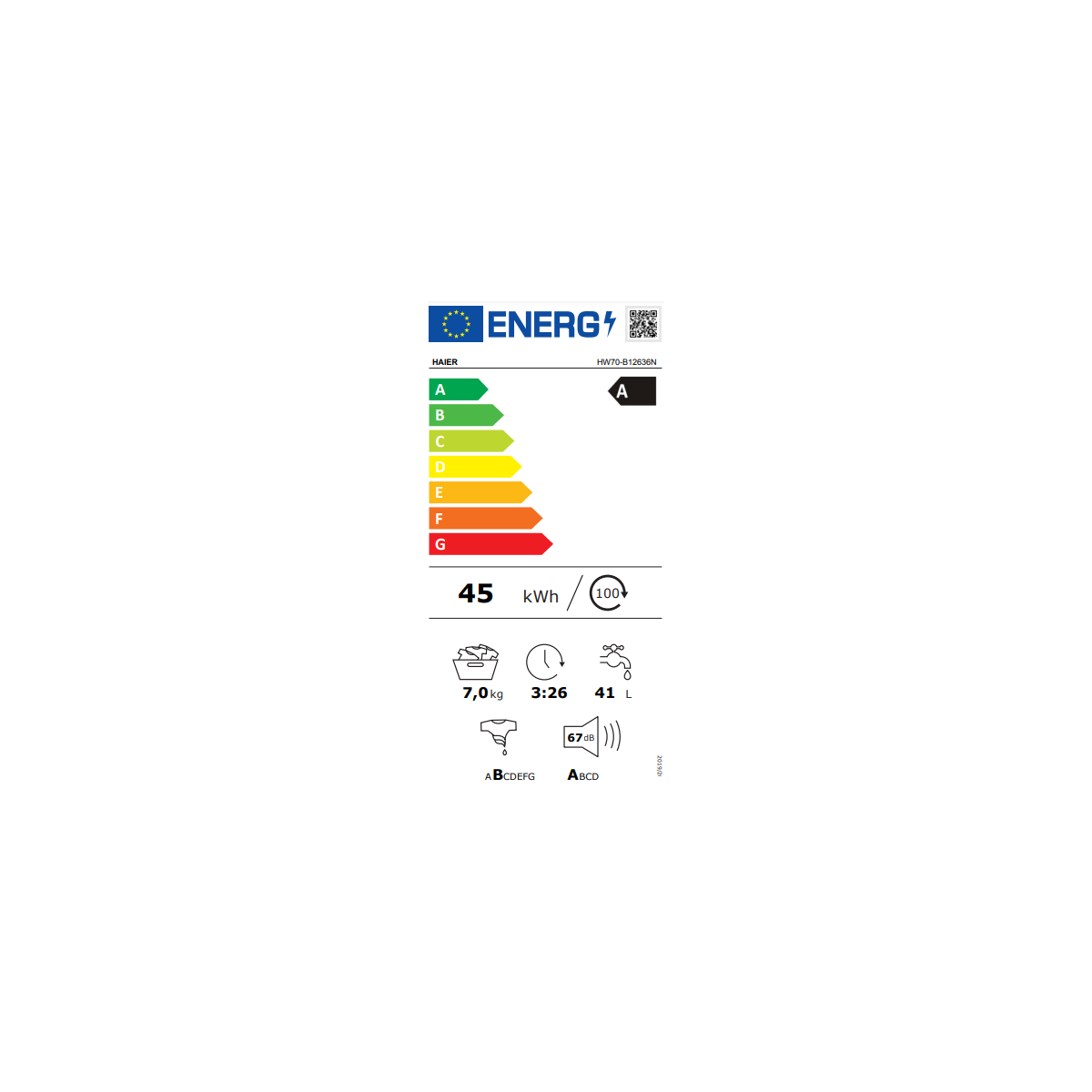 Haier HW70-B12636N - Lavatrice a Carica Frontale, 7 Kg, 1200 Giri, Classe A (A+++)