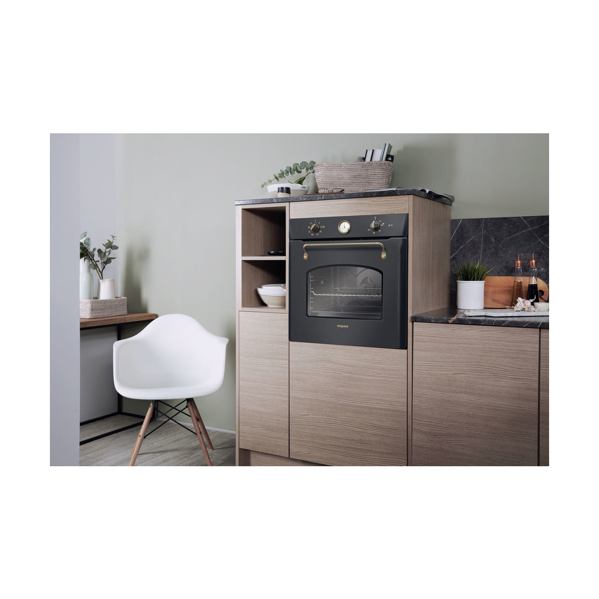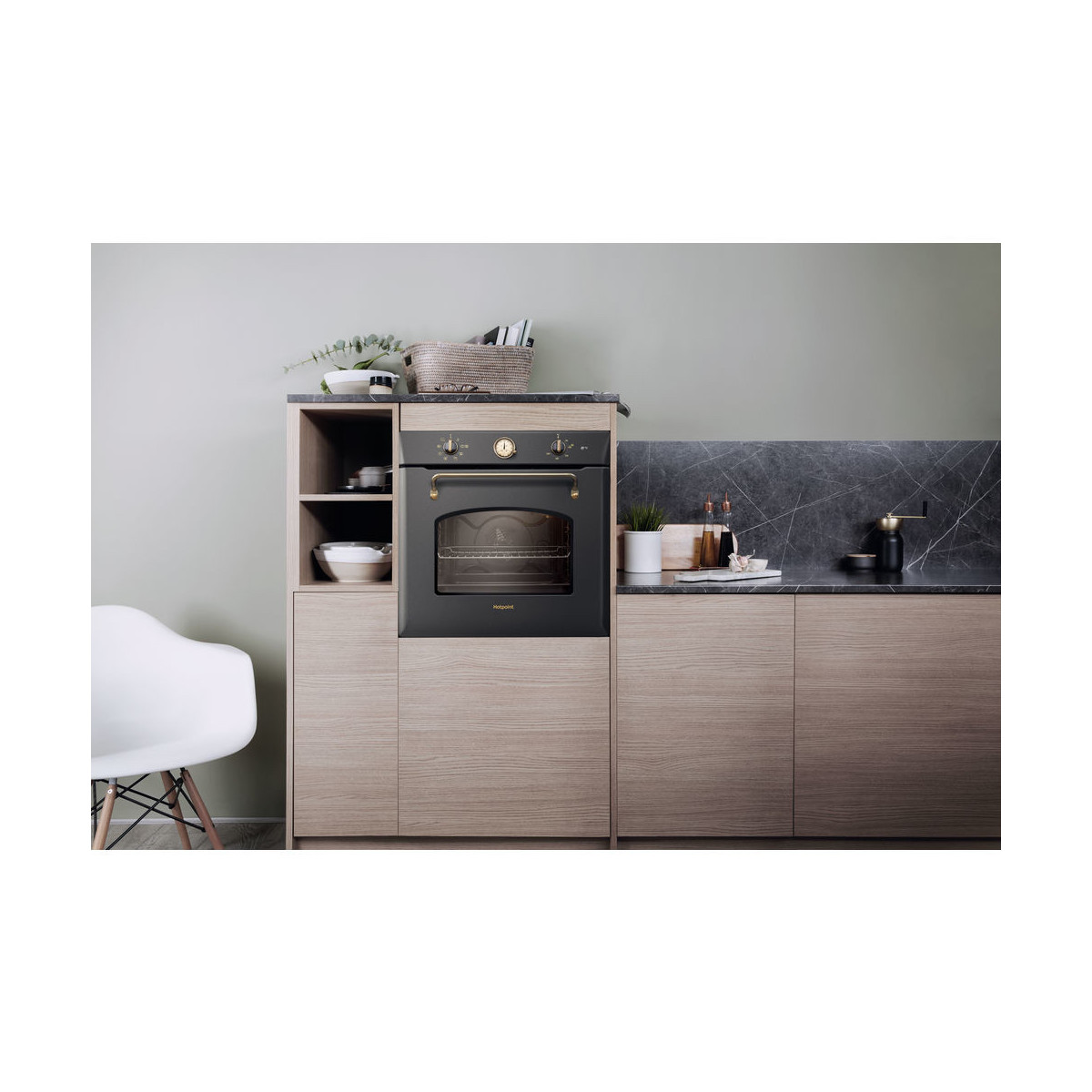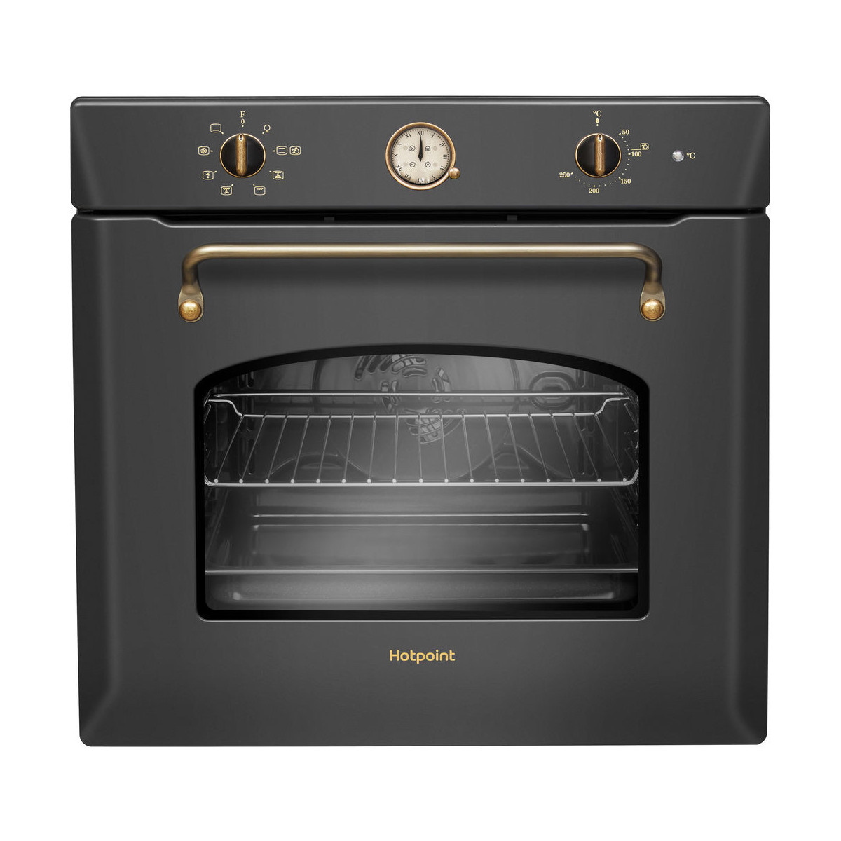 Hotpoint FIT 804 H AN HA. Dimensione del forno: Media, Tipo di forno: Forno elettrico, Capacità interna forno totale: 73 L. Posizionamento dell'apparecchio: Da incasso, Colore del prodotto: Antracite, Tipo di controllo: Manopola. Tipo di orologio: Meccanico. Classe efficienza energetica: A, Consumo energetico (convenzionale): 0,91 kWh, Consumo energetico (convezione forzata): 0,91 kWh. Quantità lampade: 1 lampada(e), Tipo di lampada: Alogena