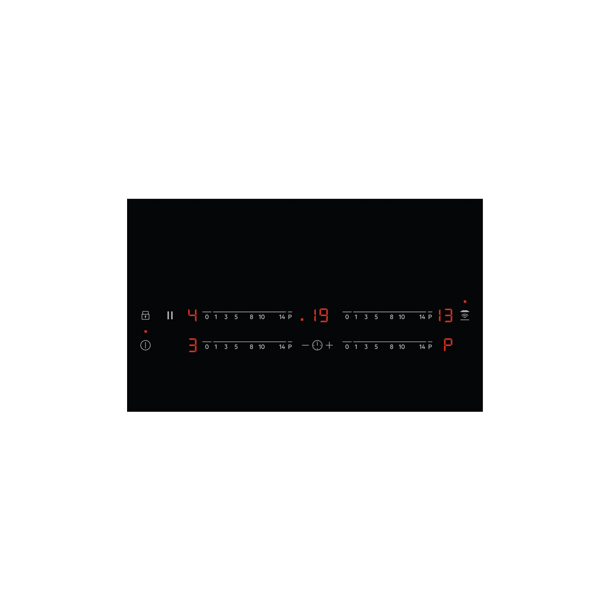 - Indicatore digitale del livello di potenza impostata per tutte le zone di cottura