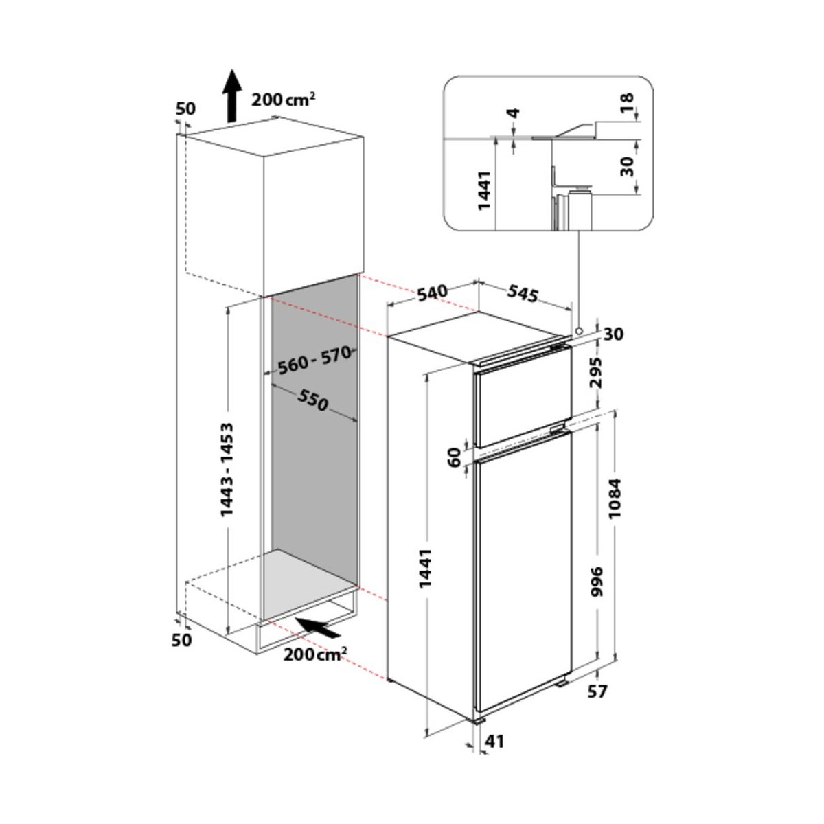 Whirlpool ART 3801 - Frigorifero Doppia Porta da Incasso, 218 Litri, Classe F (A+) 144x54x54.5 cm